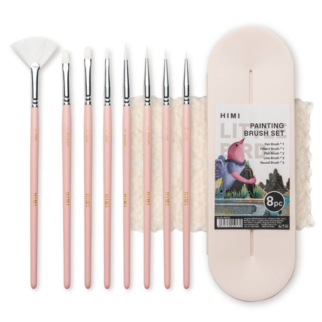 Himi - Set 8 Pinceles Little Bird Formas Mixtas Estuche Rosado