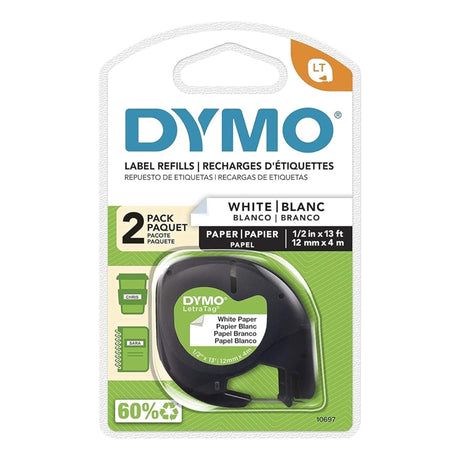 Dymo - Pack 2 Etiquetas Adhesivas de Papel Letratag 12 mm x 4 m Blanco