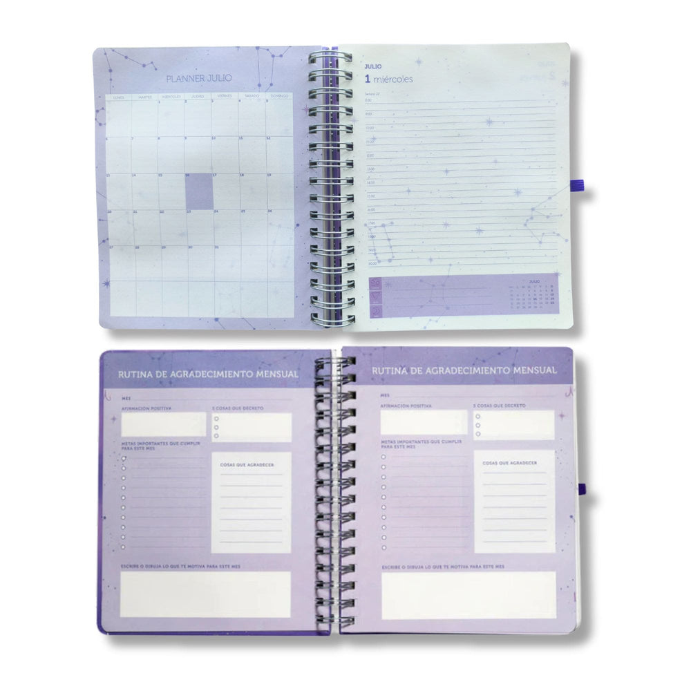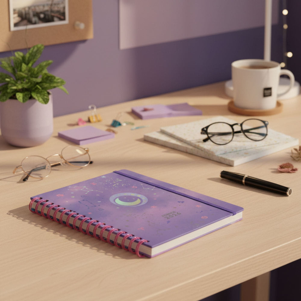 Planifica tu año 2026 con estilo y en orden con la Agenda Diaria 2026 Espiral Espiral Astral de Artel que te acompañará cada día del año 📅. Gracias a su práctico formato de día por página te permite anotar cómodamente tus tareas, metas y recordatorios. Su diseño te ofrece gran funcionalidad, con una cubierta de cuero PU y elástico de cierre, brinda durabilidad y protección a tus páginas💪. Su tono morado con detalles brilantes aportan un aire estelar ✨y la convierte en tu mejor aliada para mantener tus ideas y compromisos siempre organizados 🗓️🖊️.