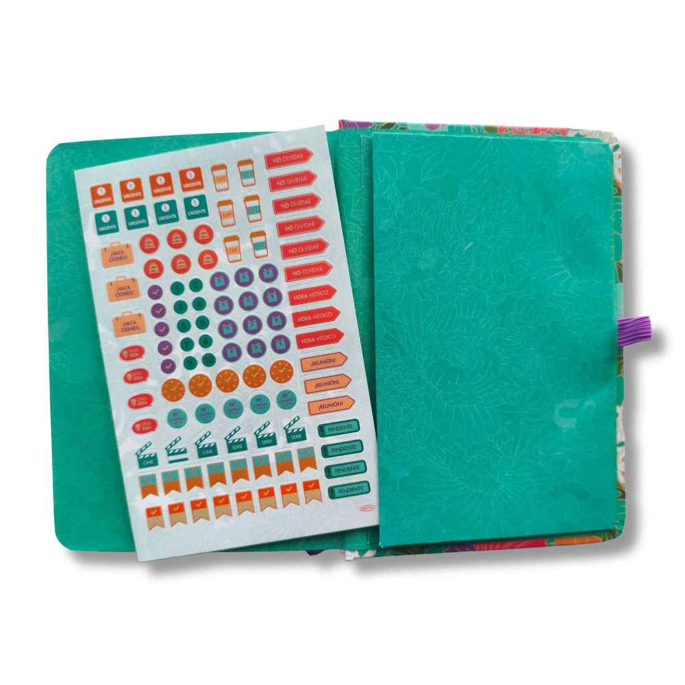 - Cinta señaladora🔖, Bolsillo interior 📂, Stickers de actividades 💖