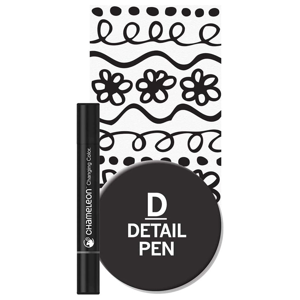 El tiralíneas doble Chameleon Detail Pen posee dos puntas (0,6 y 0,4 mm). La tinta negra es permanente cuando se seca y es compatible con tintas a base de alcohol.