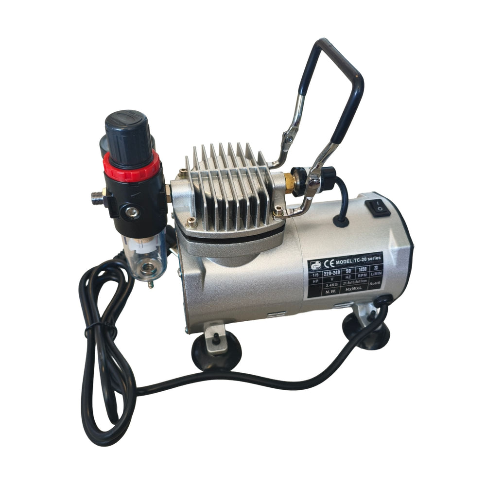 El Compresor para Aerógrafos Profesional Mejorado con Conexión 1/8 BSP sirve para impulsar aire a presión y así hacer funcionar el aerógrafo, que se usa para pintar con precisión🎨✨. Ideal para artistas, modelistas, reposteros, tatuadores temporales o aficionados al maquillaje, ya que permite controlar el flujo de aire y lograr acabados suaves y uniformes en cada aplicación. Además, al tener conexión estándar 1/8 BSP, es compatible con la mayoría de los aerógrafos del mercado.
