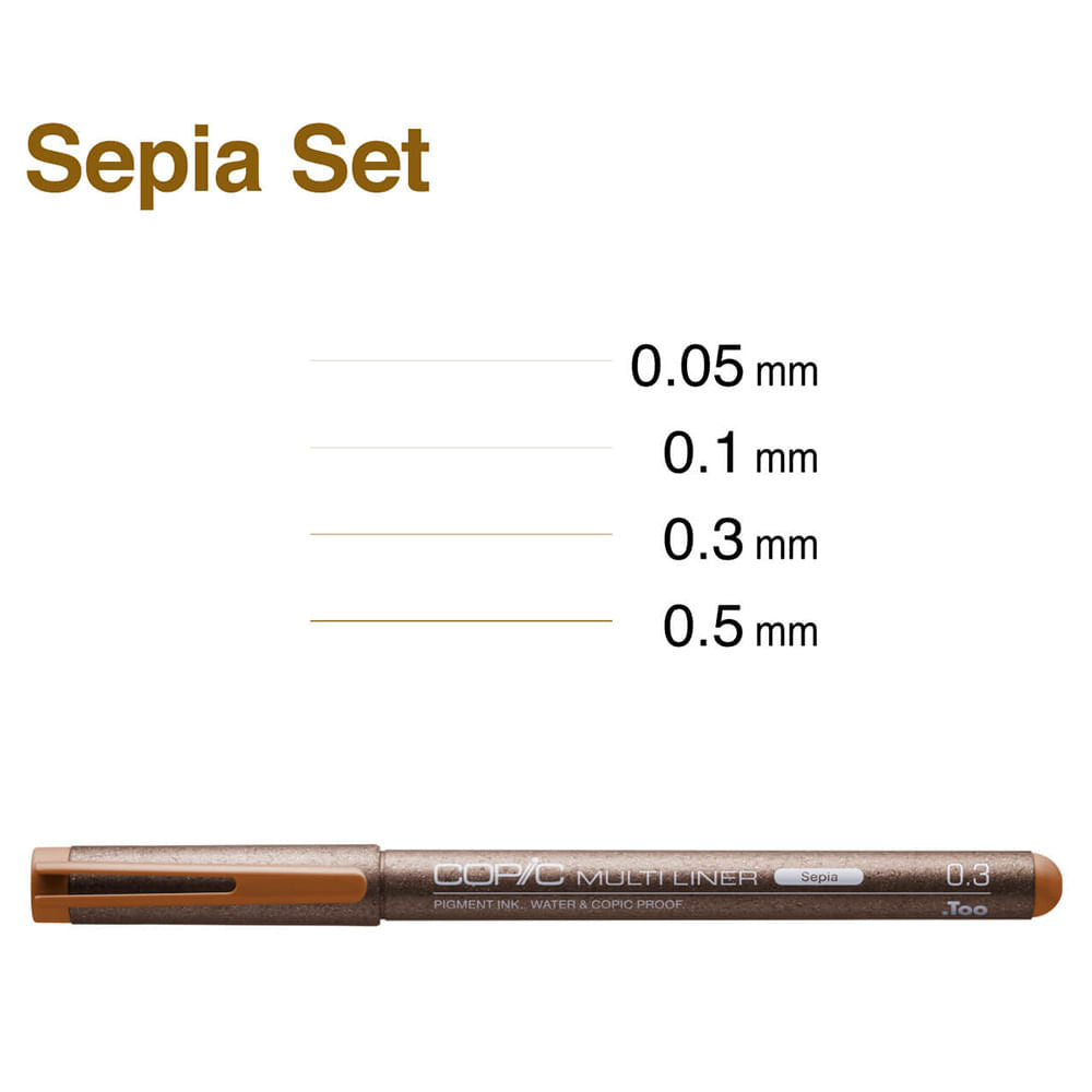 Copic Multiliner - Set 4 Tiralíneas Sepia Puntas 005-01-03-05
