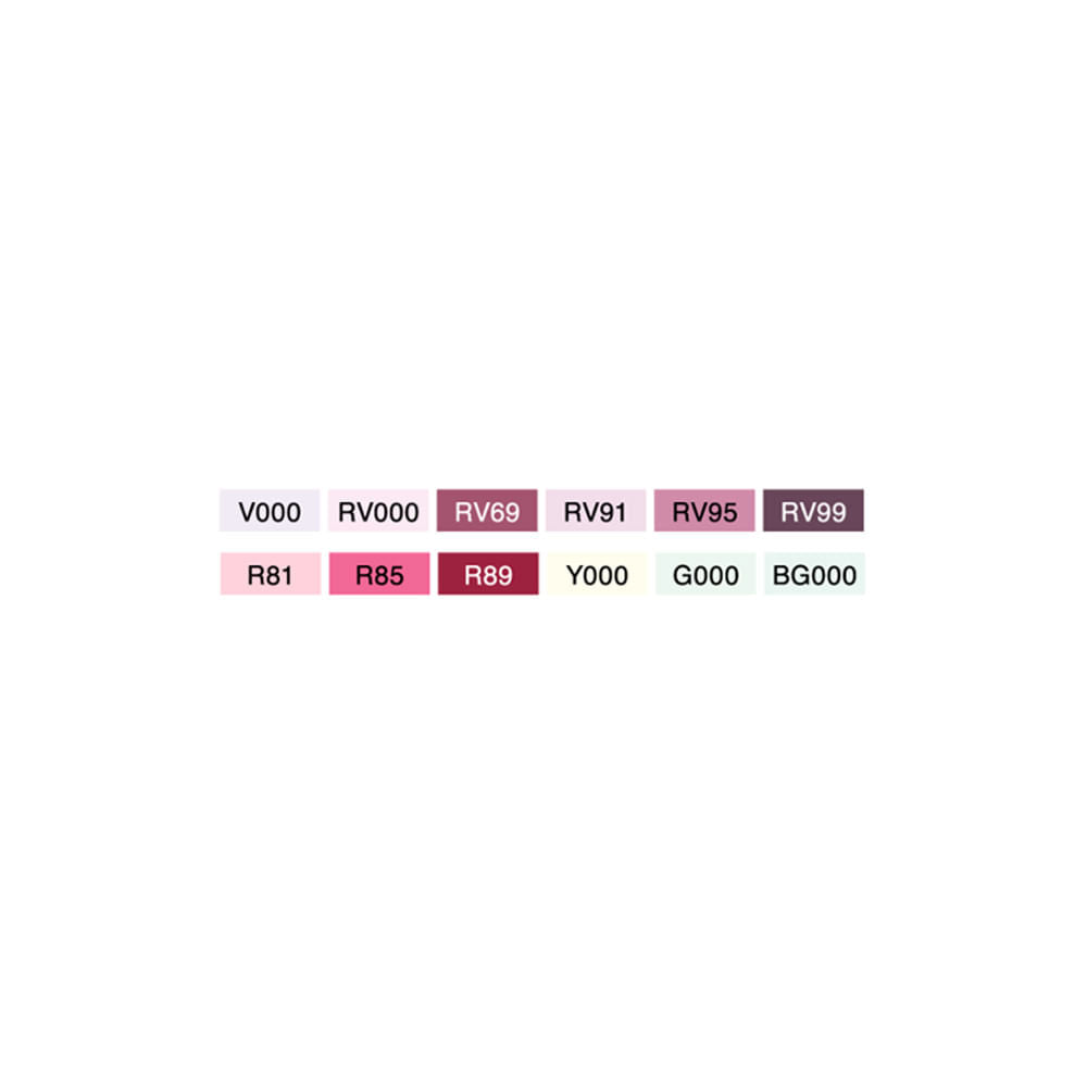 Este set contiene una amplia gama de rojos burdeos (lanzados en 2001) ideales para enriquecer tu colección Copic.