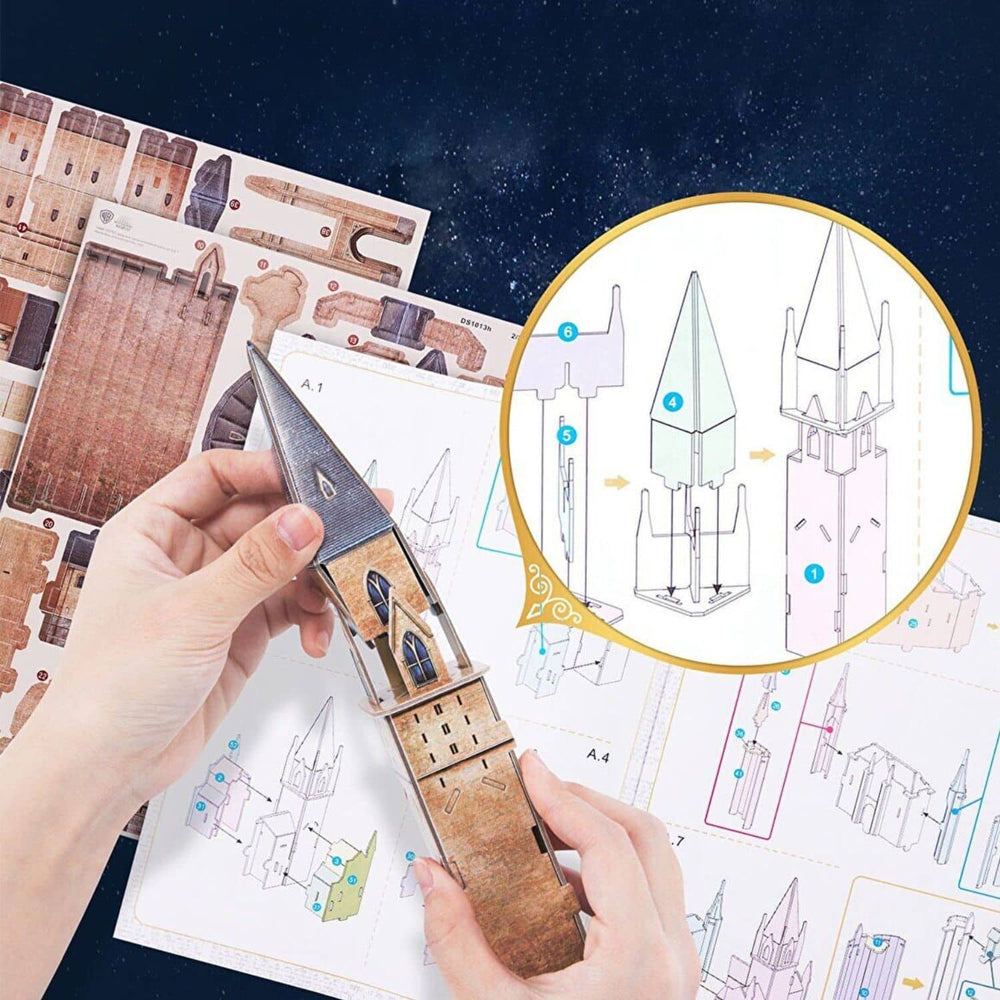 Para montar tu Puzzle 3D Harry Potter Hogwarts Castle no necesitas pegamento ni elementos adicionales, además, cada una de sus piezas se encuentran numeradas para que encontrarlas sea una tarea fácil. Armar esta pieza te llevará aproximadamente 5 horas, permitiéndote sumergirte durante una tarde entera en la construcción de tu propio Castillo en 3D. El producto incluye un manual de instrucciones.