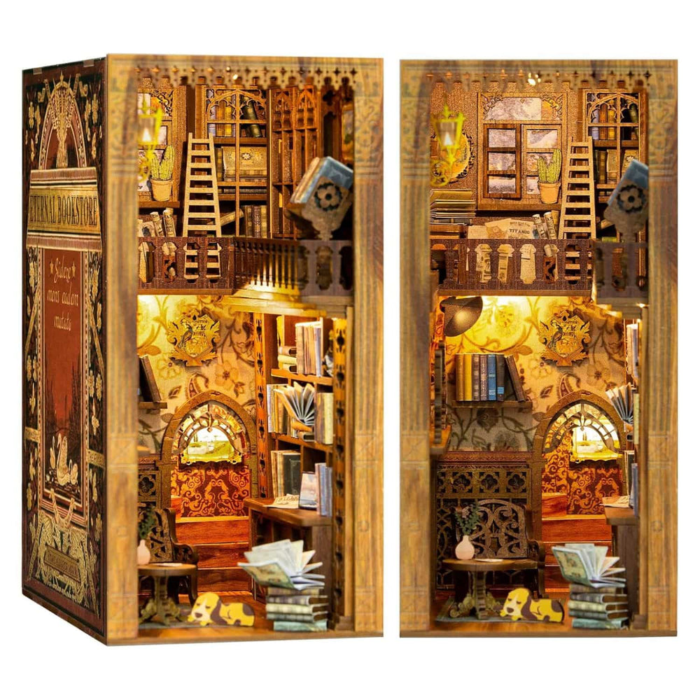 Los Booknooks son separadores de libros en 3D que recrean diversos y cálidos mini ambientes para que construyas tú mismo. Nos trasladan a diferentes lugares en miniatura y le dan un toque único a nuestra biblioteca. Los separadores de libros de Cutebee cuentan con iluminación cálida, la cual se encenderá y apagará al presionar el interruptor. Estas luces añaden calidez y una atmósfera de ensueño a la escena, entregando vida y dinamismo a tu colección de libros, ya sea en la casa o en la oficina.