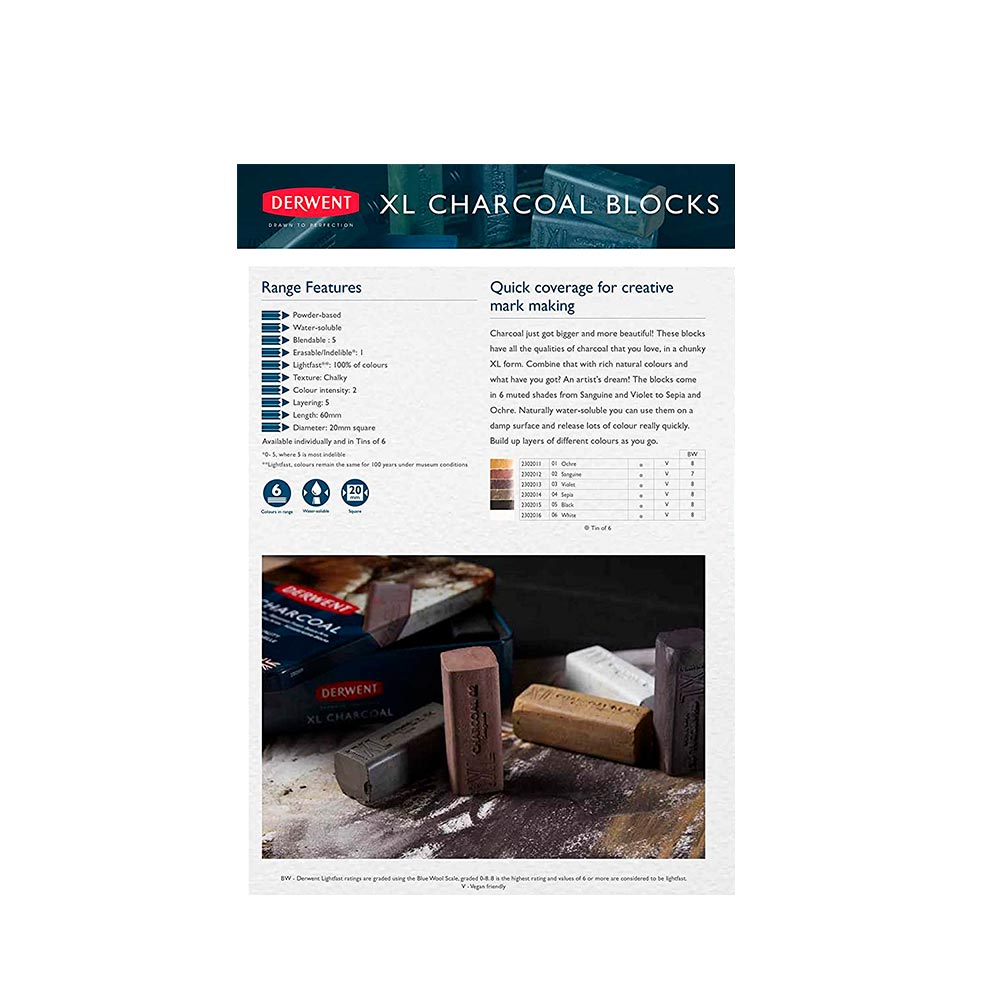 Derwent XL Charcoal - Set 6 Barras de Carboncillo Colores