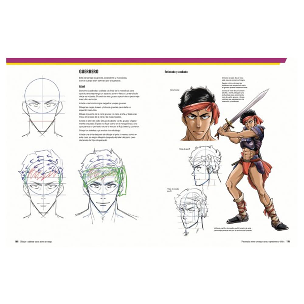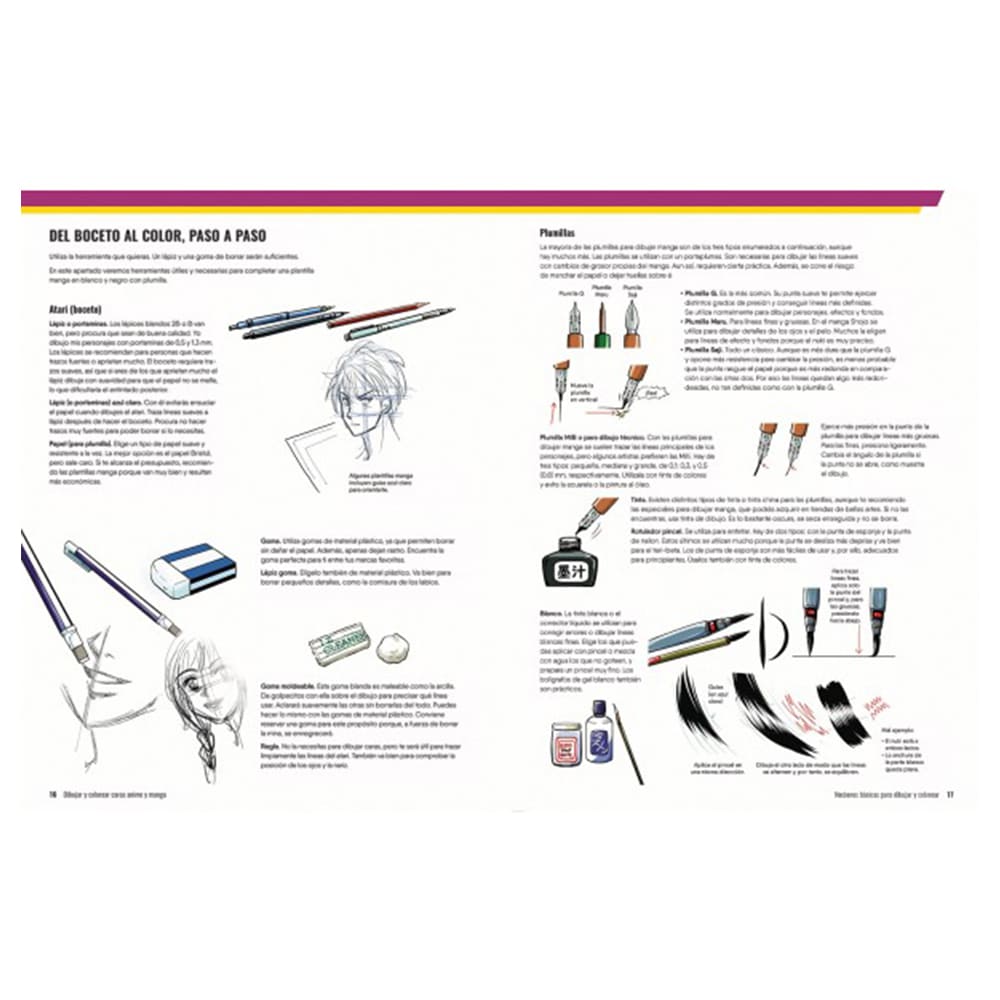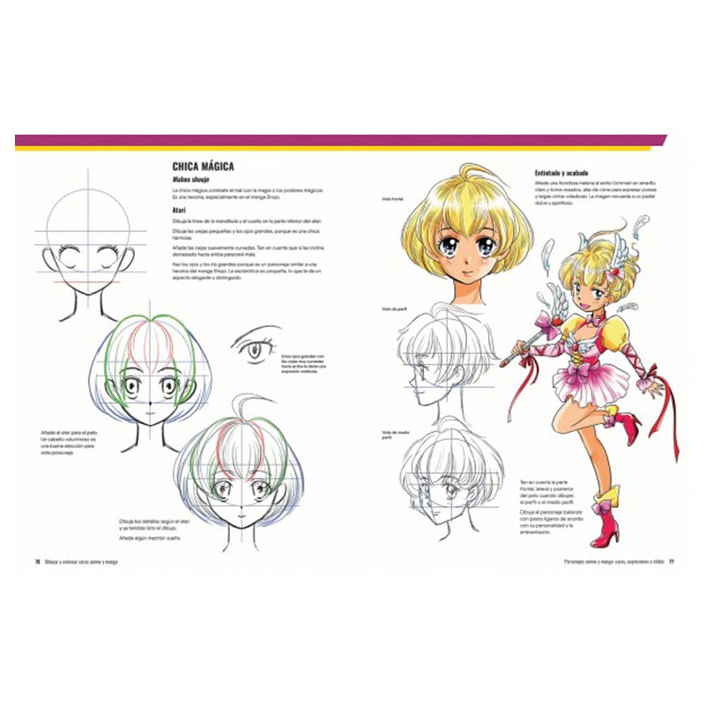 Nociones básicas para dibujar y colorear Aprende a usar la terminología básica para dibujar manga; a trazar caras de frente, de perfil y de medio perfil; a hacer distintos tipos de pelo y ojos, y a acertar con las proporciones del personaje estándar y su chibi. Sigue el proceso creativo desde el boceto preliminar hasta el dibujo definitivo, y descubre cómo llevar tus dibujos a otro nivel con una definición sorprendente, un color fuera de serie y detalles especiales que darán a tus personajes el punto exacto de autenticidad.