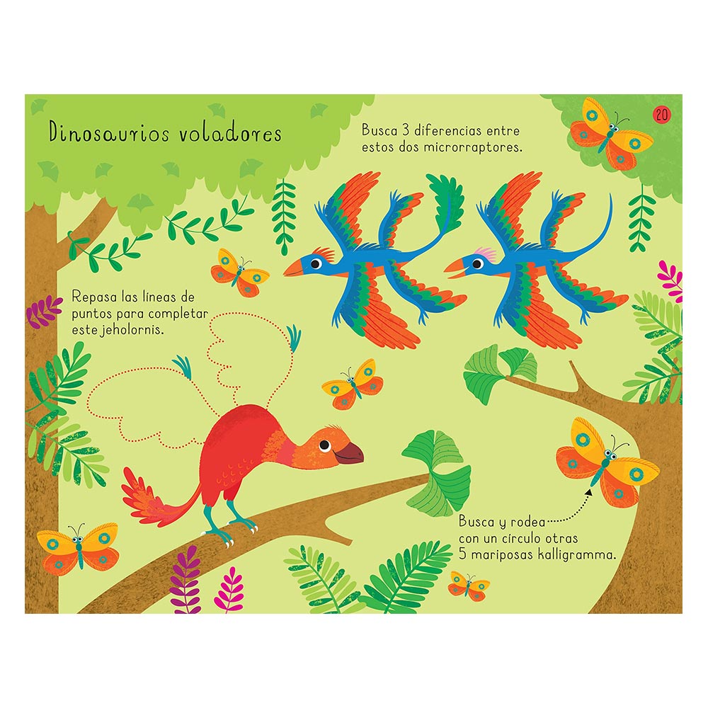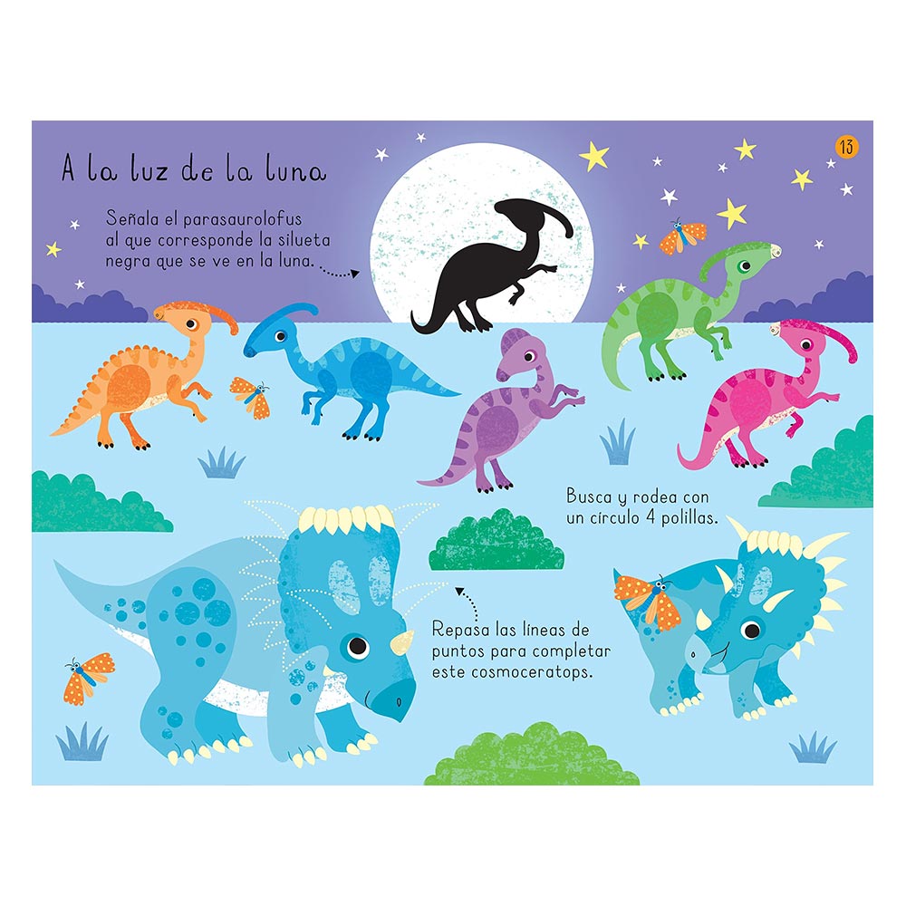 Bloc para los más pequeños con actividades muy variadas inspiradas en los dinosaurios: Colorea, une los puntos, laberintos y juegos, en compañía de todo tipo de dinosaurios. Las soluciones de los pasatiempos están en la parte final.