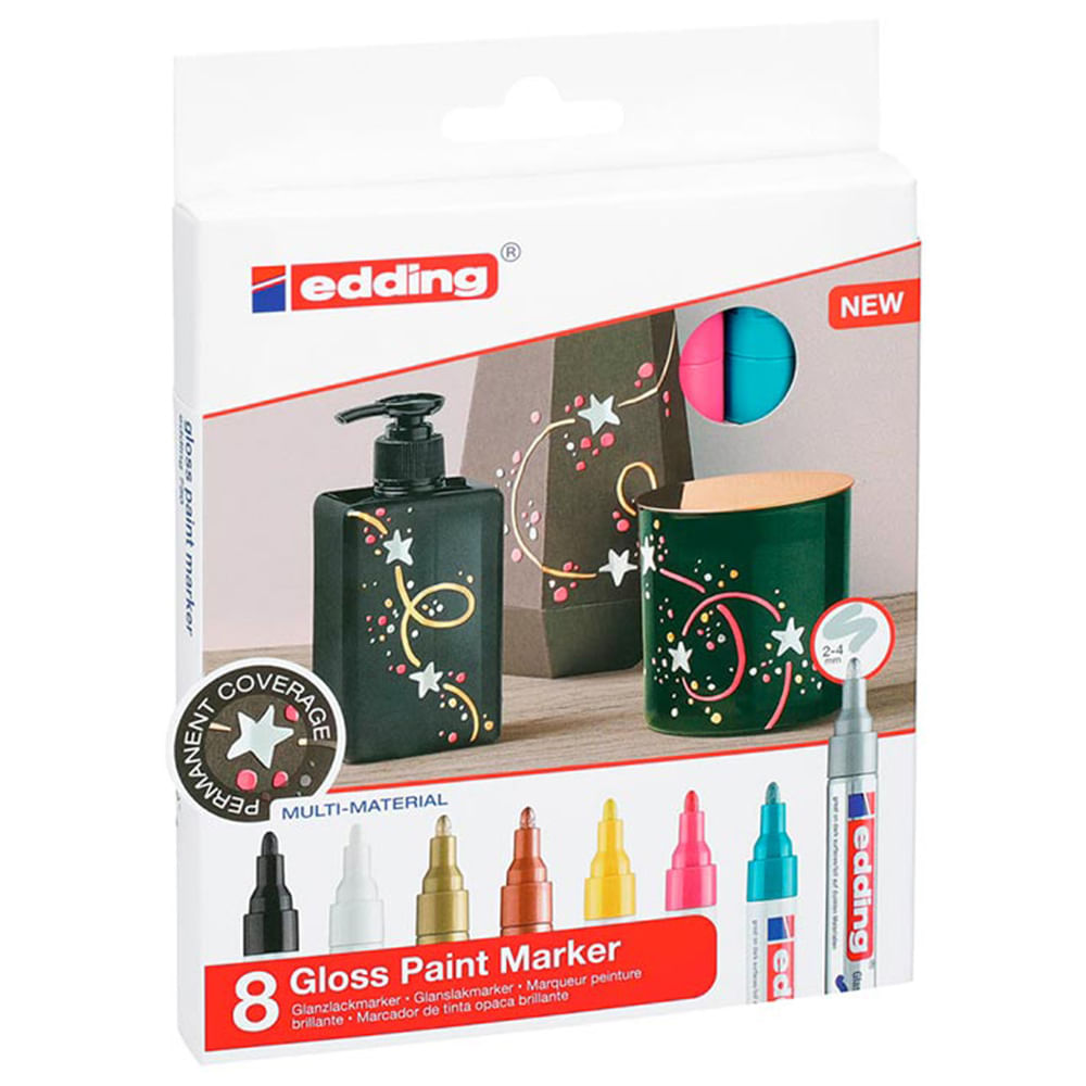 Cubrientes, resistentes al lavado y confiables incluso en las superficies más difíciles: ¡Los Gloss Paint Marker de Edding son demasiado versátiles! Descubre ahora los nuevos colores pastel y metálicos. Con un total de cuatro grosores diferentes de trazos en sets de distintos tamaños para cada tipo de aplicación. ¡Pruébalos todos!