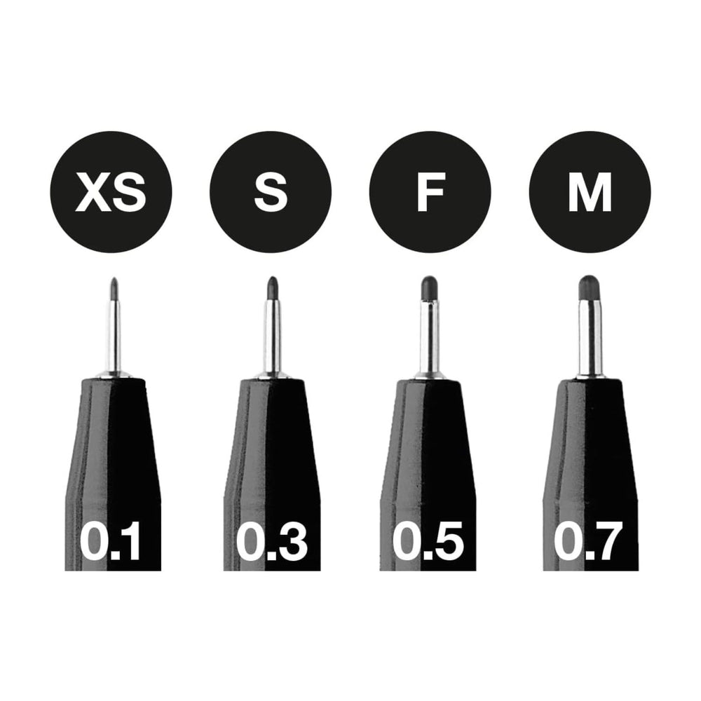 - Puntas: XS = 0,1 mm, S = 0,3 mm, F = 0,5 mm, M = 0,7 mm