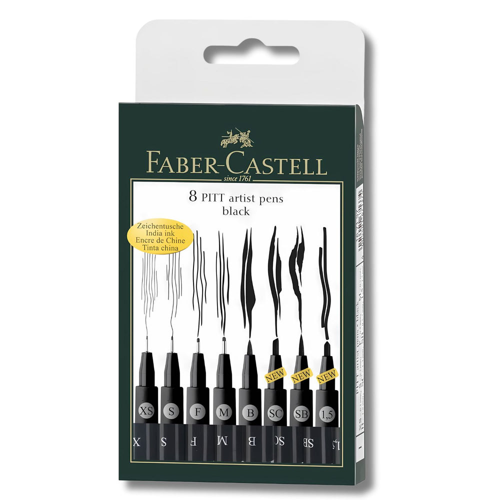 Faber-Castell Pitt - Set 8 Tiralíneas Negro Surtidos