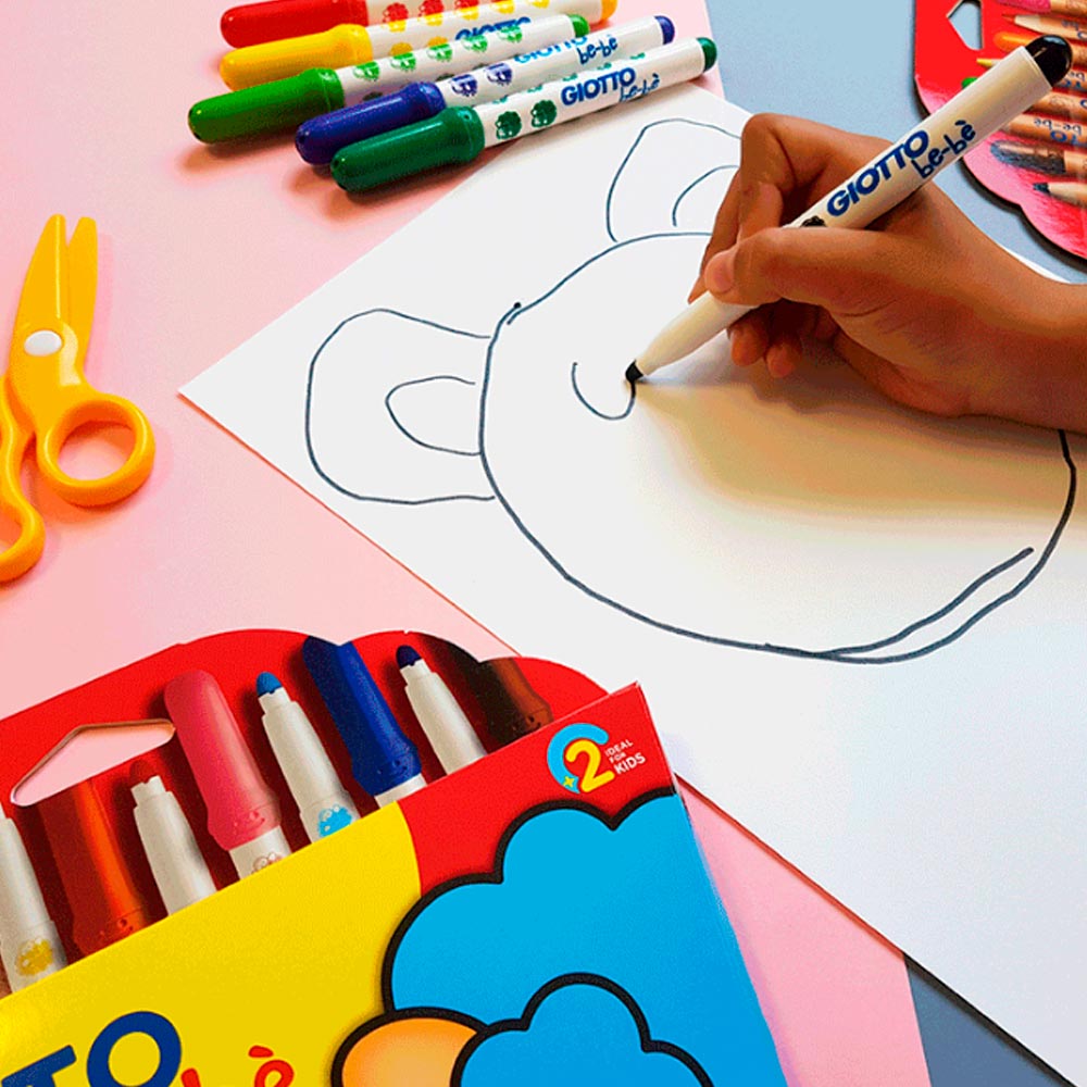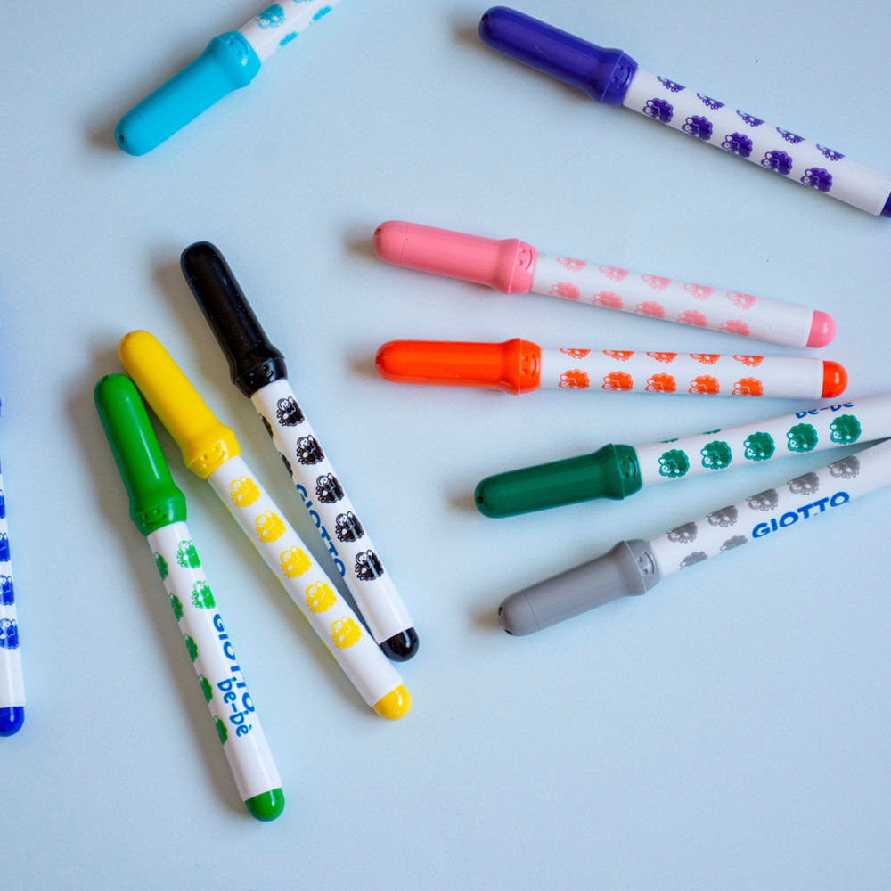 Los Marcadores de Colores Giotto be-bé permiten explorar la creatividad de los más pequeños de forma 100% segura. Con sus 6 colores, ofrecen una llamativa gama de colores vibrantes. Son más cortos, más fáciles de sujetar y resistentes. Su tinta es fácil de quitar de las manos y de la tela, volviéndolos completamente lavables.