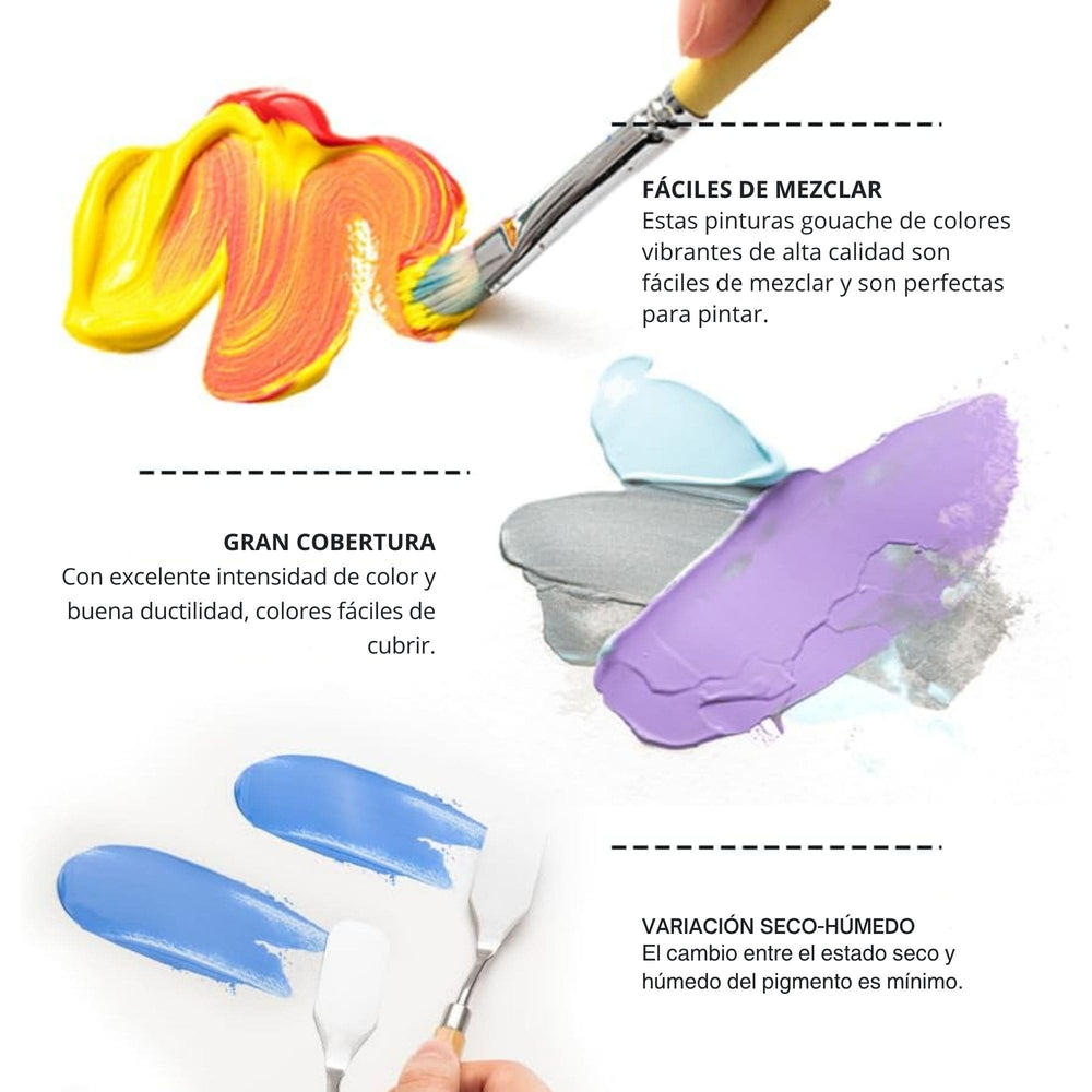 ¡Muy fácil! Su rápido secado permite trabajar ágilmente, sin largas esperas entre capa y capa. Son seguras, no tóxicas, sin olor y se pueden limpiar con agua tibia y jabón💧🧼. Perfectas para pintar en papel, lienzo, madera y mucho más.