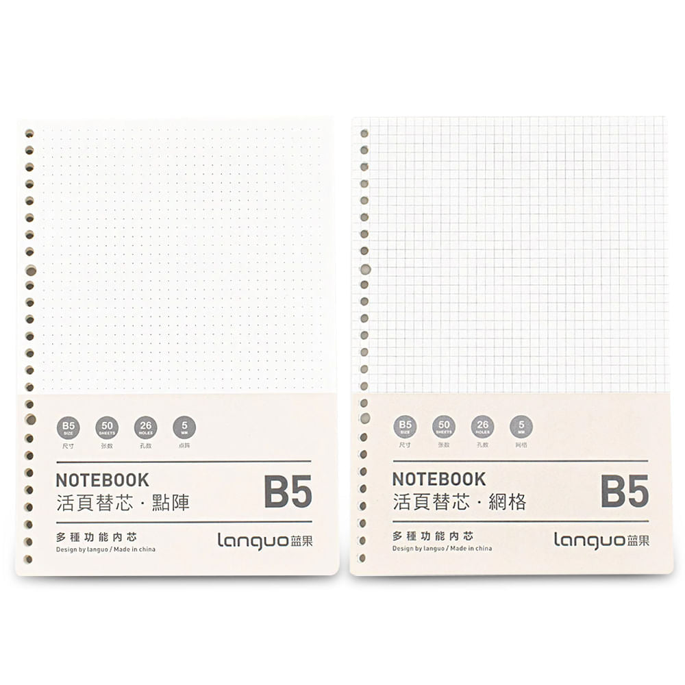 Languo - Pack 50 Hojas para Libretas Anilladas Tipo Binder B5 con Sistema Refill