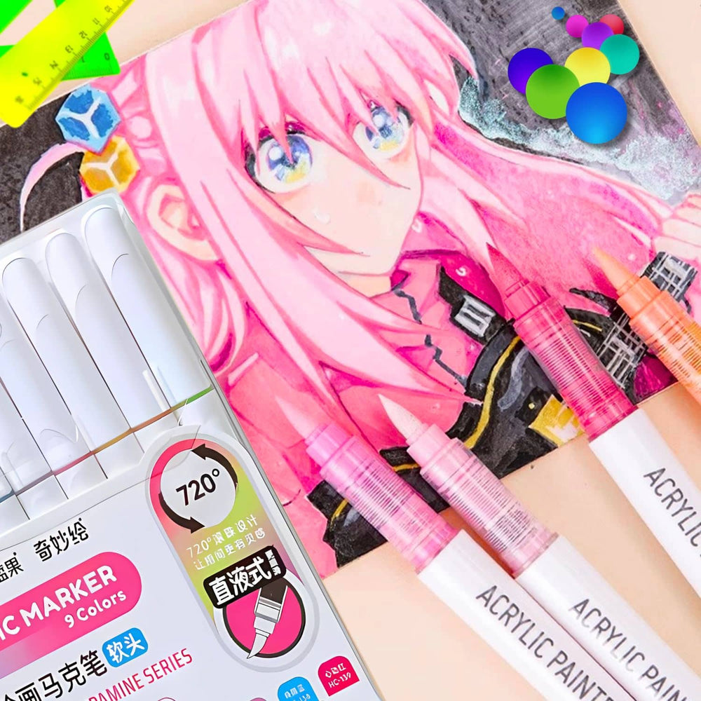 Languo - Set 9 Marcadores Acrílicos Punta Pincel 2.0 Dopamine Series