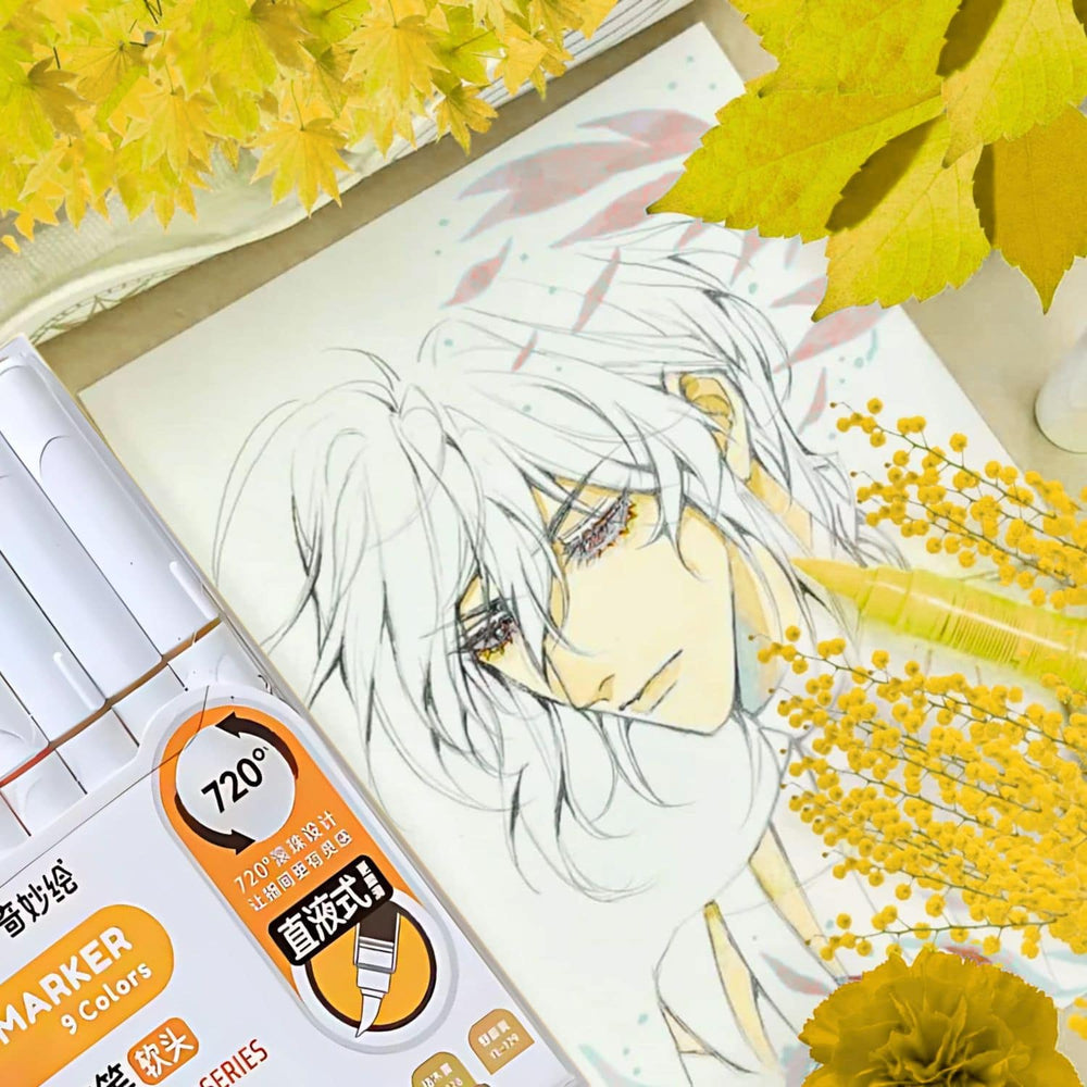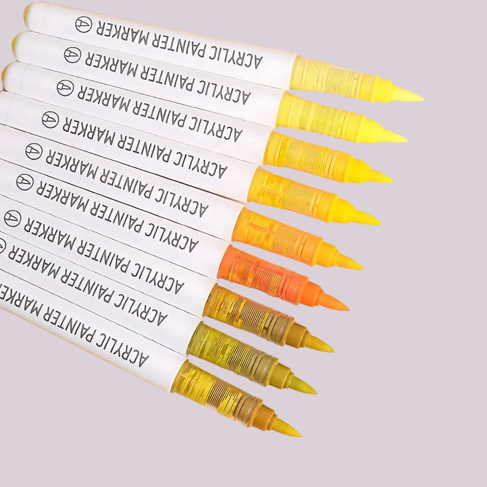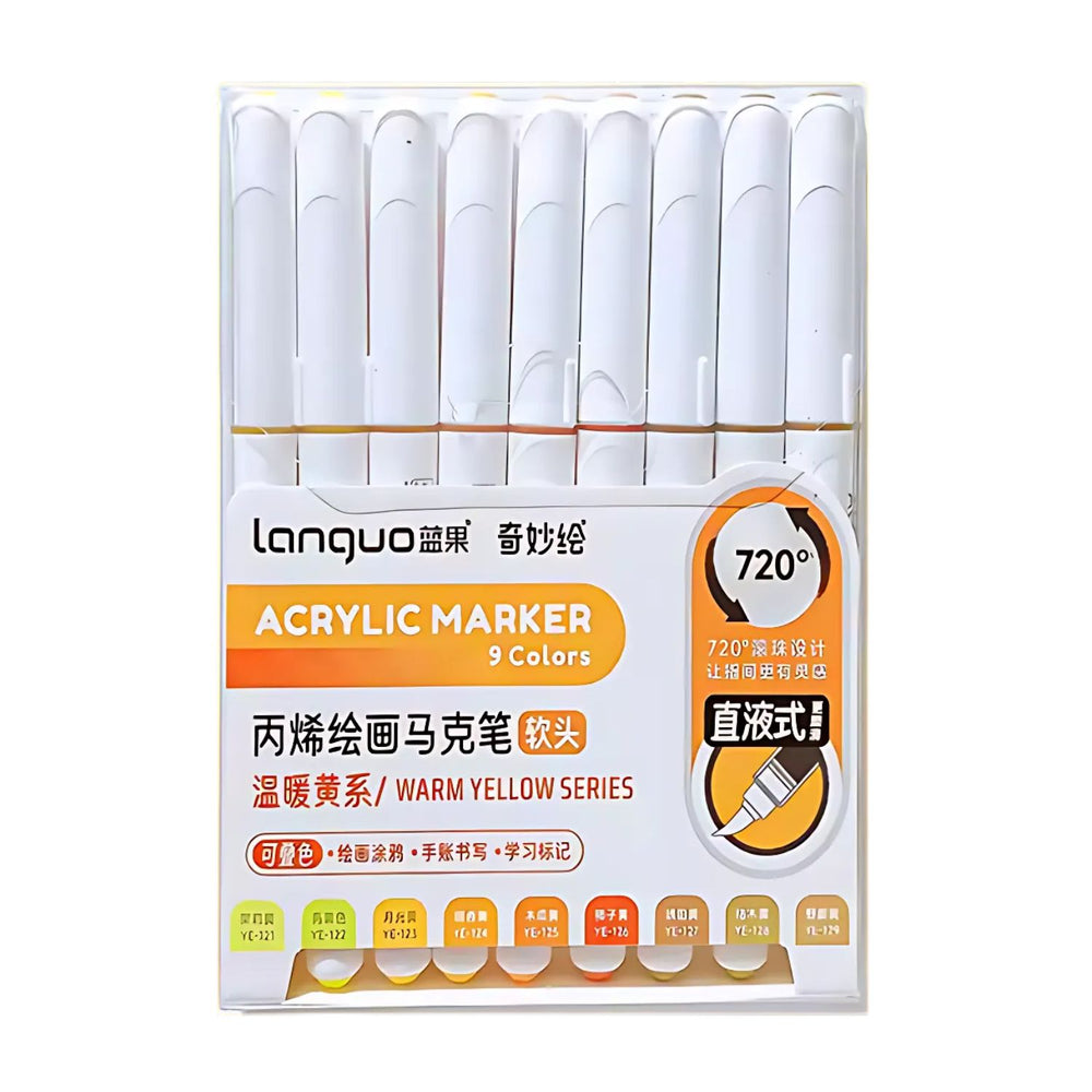 Languo - Set 9 Marcadores Acrílicos Punta Pincel Warm Yellow Series