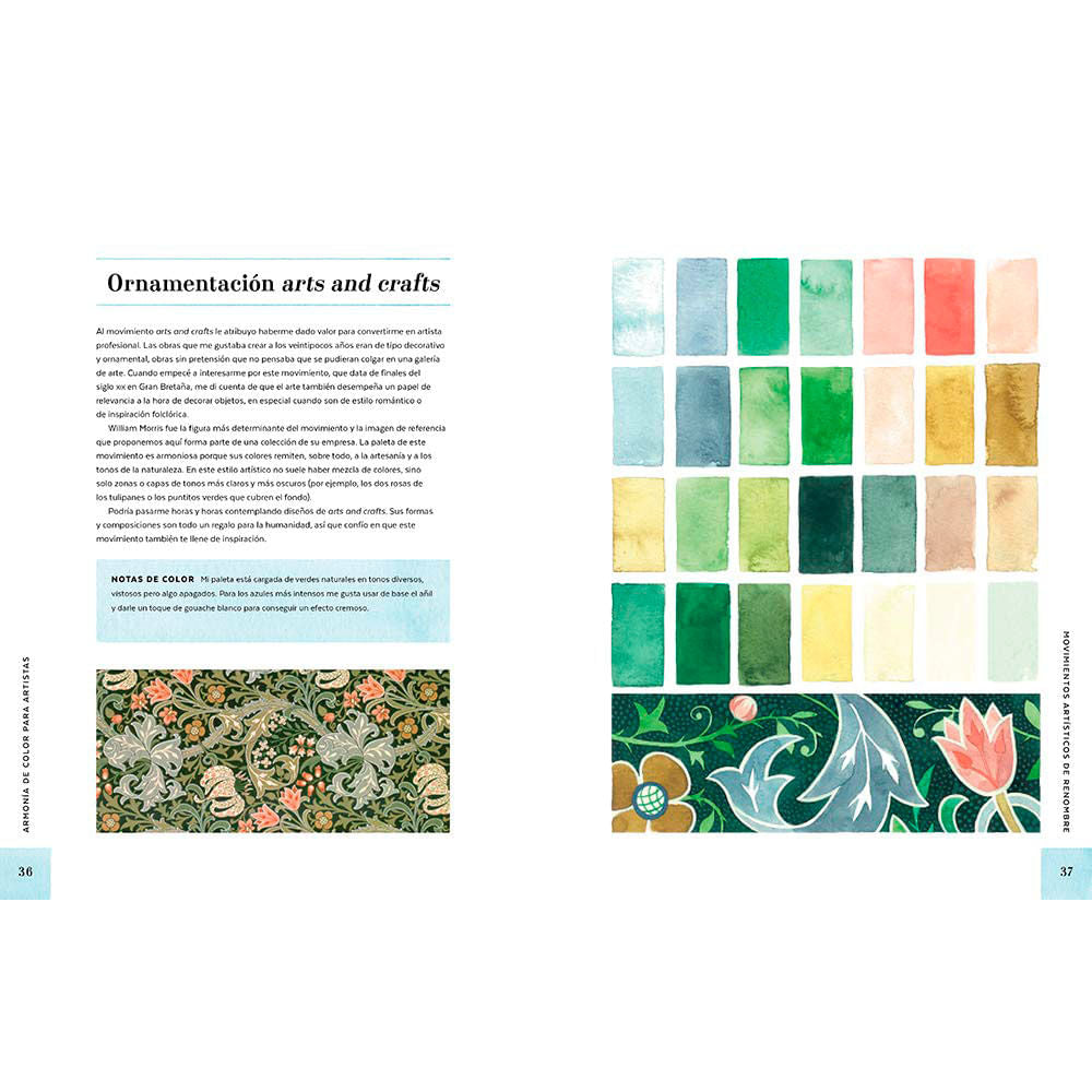 - 56 paletas de color: un extenso y valioso muestrario basado en fotografías y bellas obras de arte que te servirá de fuente de inspiración y te enseñará a trasladar a una paleta de color la realidad que te rodea.