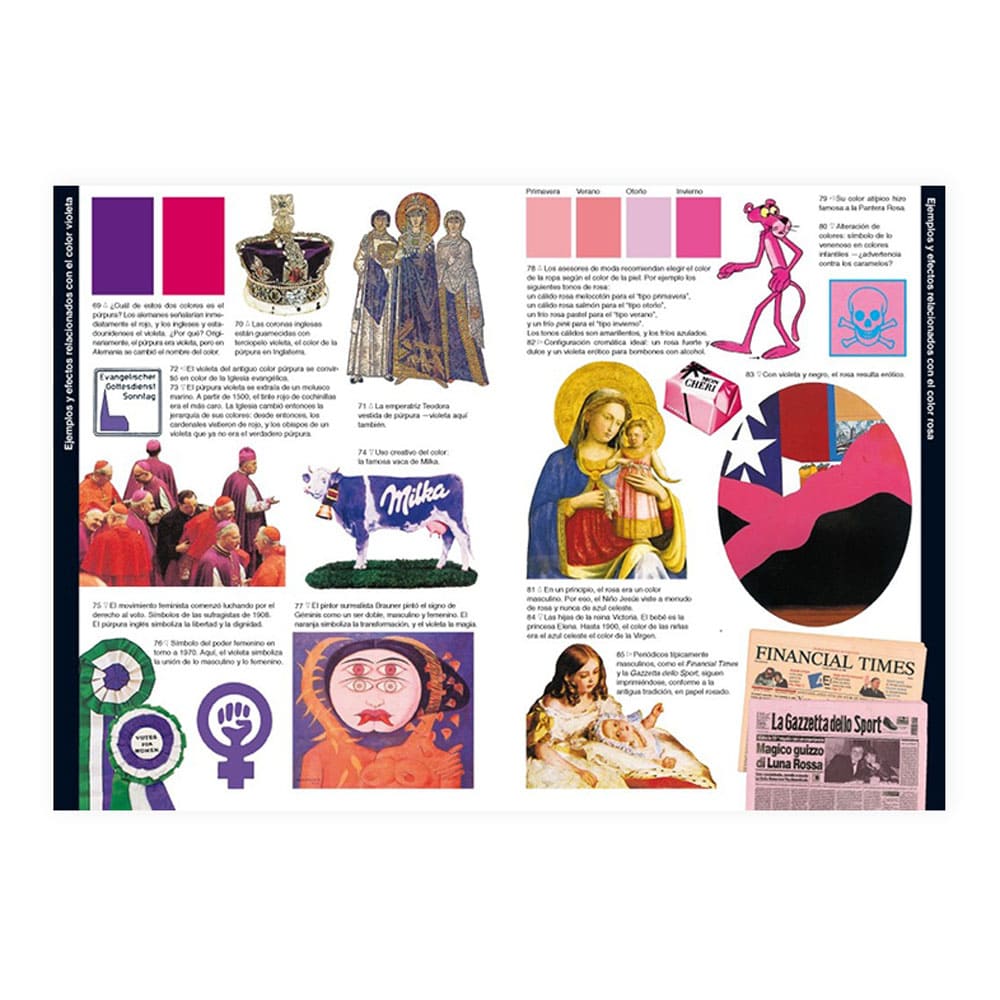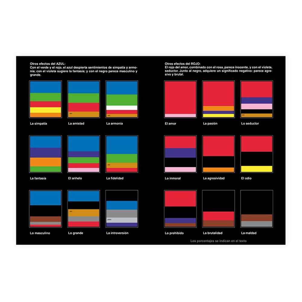 Conocemos muchos más sentimientos que colores. Por eso cada color puede producir muchos efectos distintos, a menudo contradictorios. Un mismo rojo puede resultar erótico o brutal, inoportuno o noble. Un mismo verde puede parecer saludable, venenoso o tranquilizante. Un amarillo, radiante o hiriente... Ningún color carece de significado. Su efecto está determinado por su contexto y las personas que trabajan con los colores deberían conocer a fondo esos contextos y esos efectos.