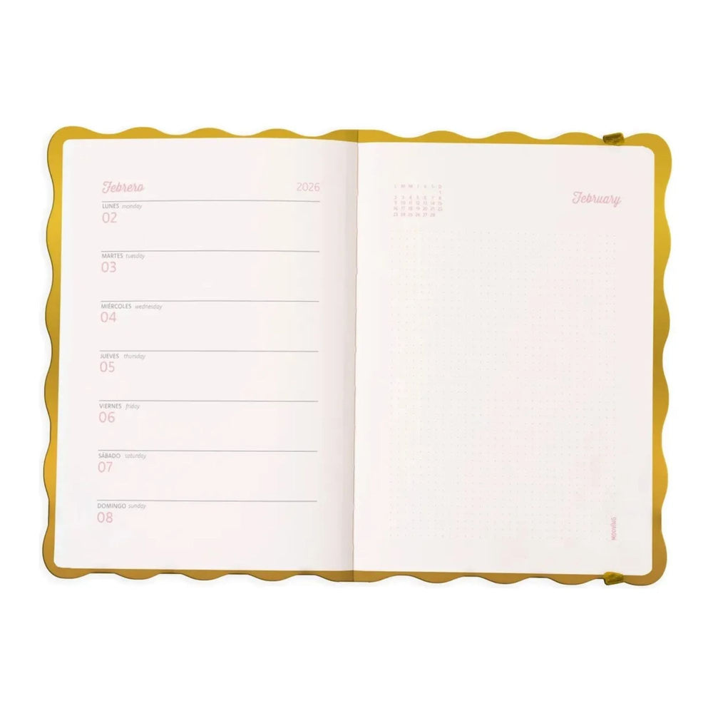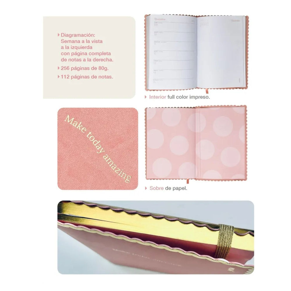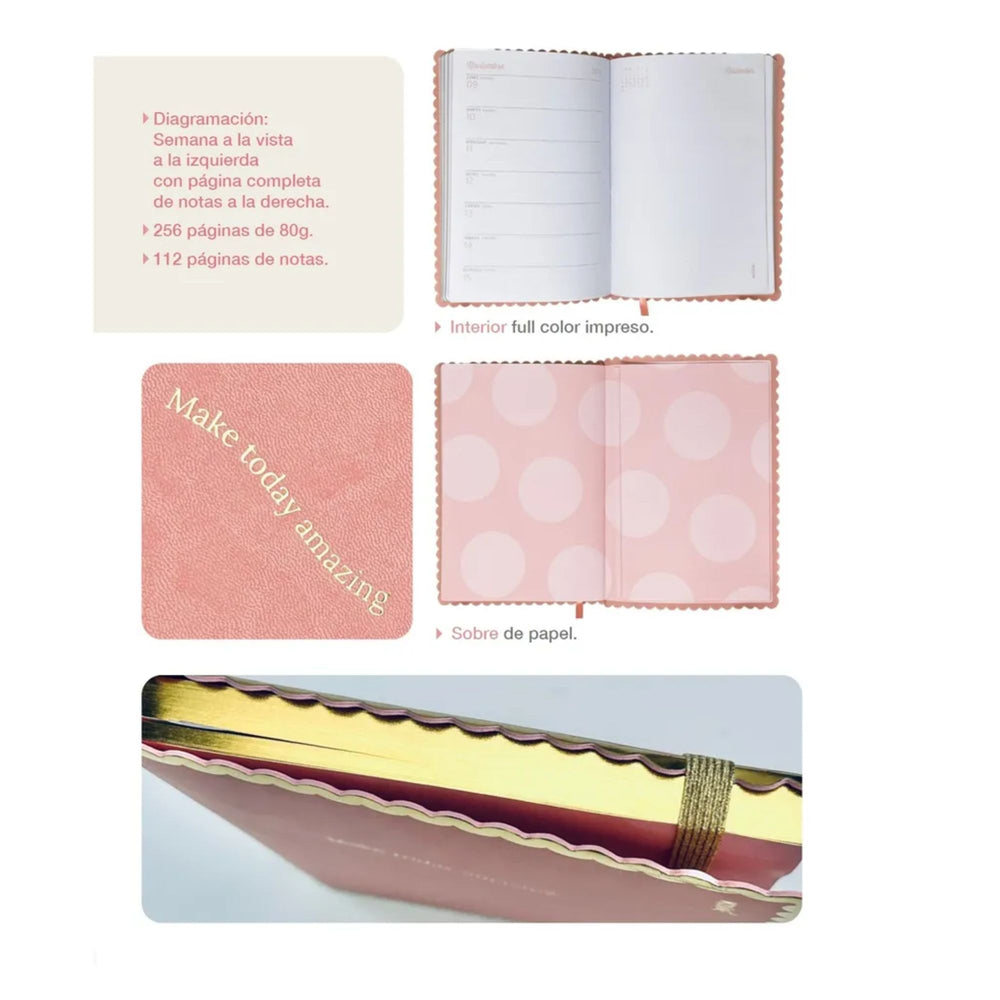 Con su práctico formato semanal 📅, tendrás la semana a la vista a la página izquierda y, a la derecha, una hoja punteada completa para planificar, tomar notas, anotar ideas, recordatorios o incluso hacer dibujos 🎨. Es ideal para estudiantes 📚, profesionales 💼 o como un regalo especial 🎁 para quienes disfrutan de la organización con un bello estilo 🌸. ¡Con la Agenda Mooving Glow 2026, cada día comienza con inspiración y brillo! ✨🌈🌟