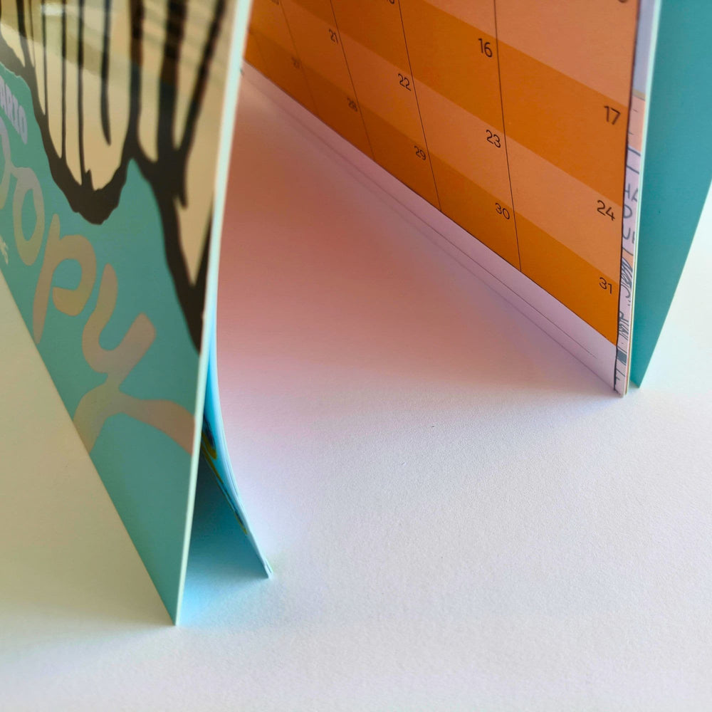 Su tapa semirrígida está impresa a full color con laca sectorizada y stamping que realzan cada detalle✨. Consta de seis hojas en papel obra de 250 g, impresas por ambas caras, súper resistentes. Además, viene en presentación termosellada para mayor protección💪. Ideal para mantener tus compromisos a la vista y decorar tus espacios con un diseño inspirador💖📅.