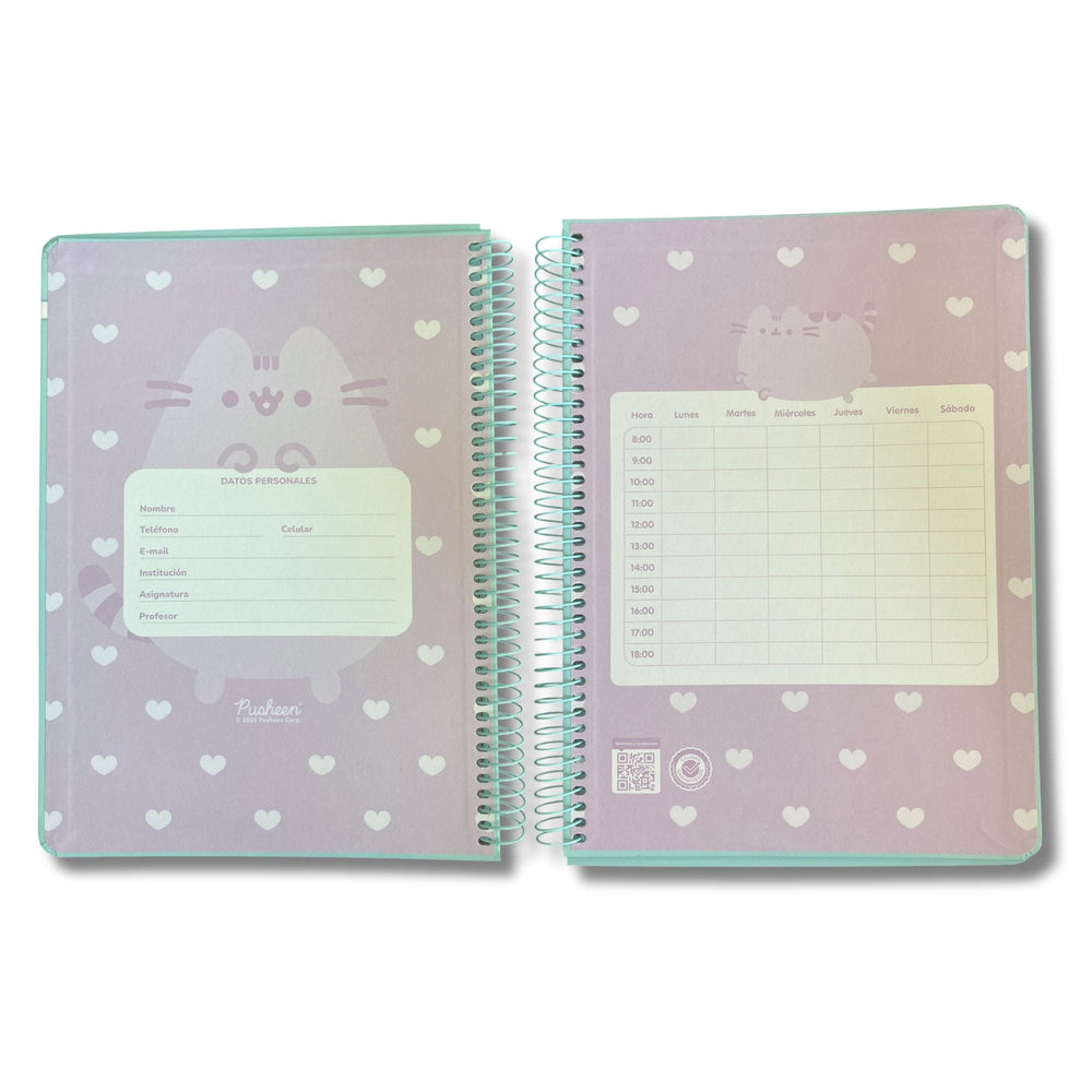 Con el Cuaderno Triple Carta Papel Premium Pusheen podrás organizar tus materias, apuntes y anotaciones de manera práctica y en un hermoso formato✨. Se presenta en 4 diseños aleatorios de la tierna gatita Pusheen con detalles holográficos 🐱🌈. Estos cuadernos son aptos para organizar 3 materias e incluyen una sección para tus datos en forma personalizada y un horario para que te organices con eficiencia📝. ¡Disfruta la calidad y ternura de estos bellos cuadernos! 💖