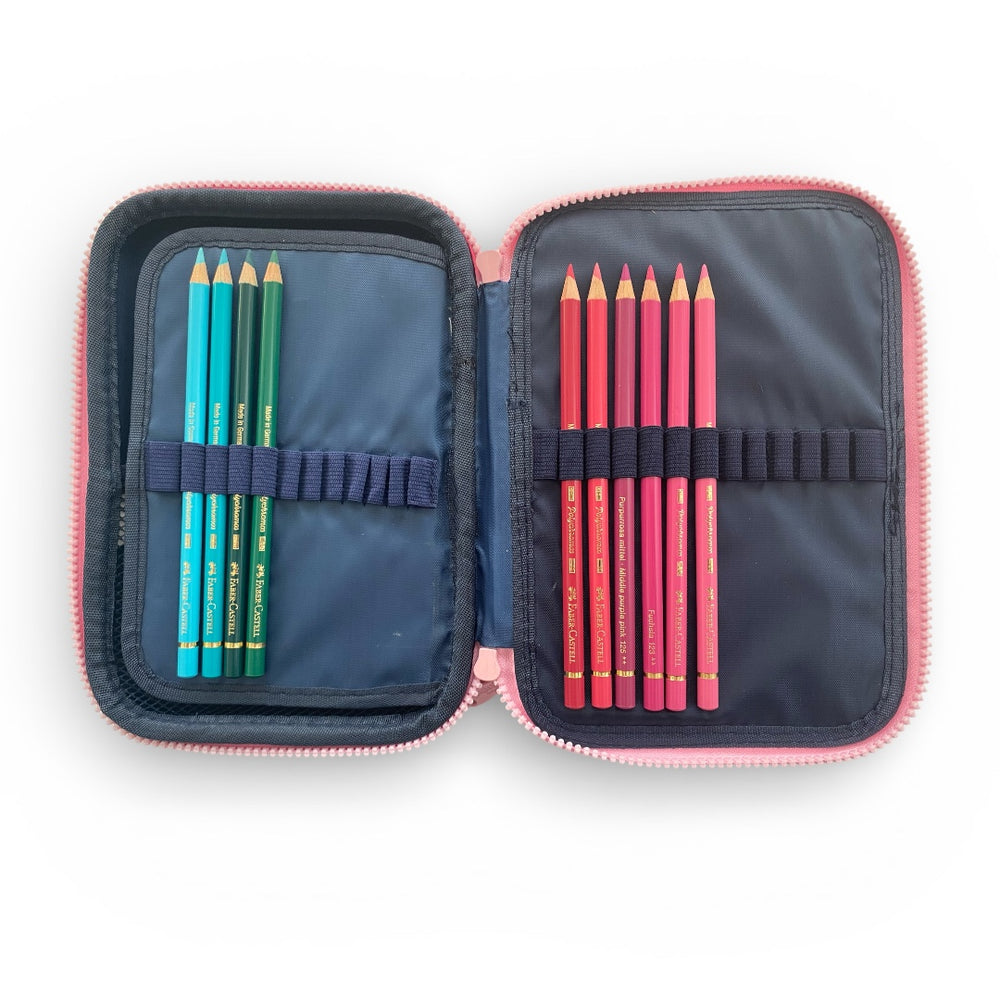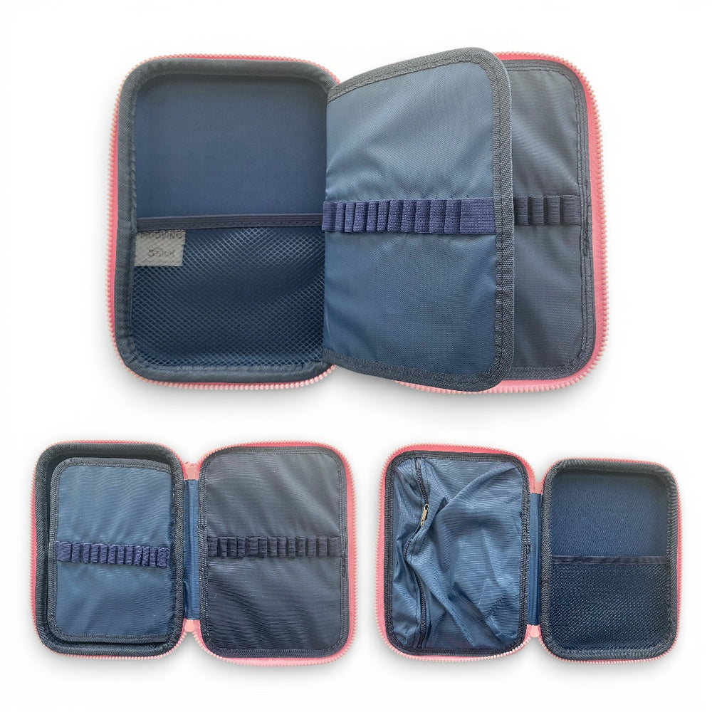 Esta cartuchera cuenta con dos amplios compartimentos: el primero, con capacidad para organizar hasta 36 lápices, posee 1 bolsillo de red - ideal para pequeños objetos o accesorios -, 1 solapa con 24 elásticos para útiles y 12 elásticos en el medio, el segundo compartimiento cuenta con una solapa con cierre y otro bolsillo de red. Aunque las imágenes son ilustrativas y los colores pueden variar, la cartuchera Mooving refleja tu estilo y personalidad en cada detalle.