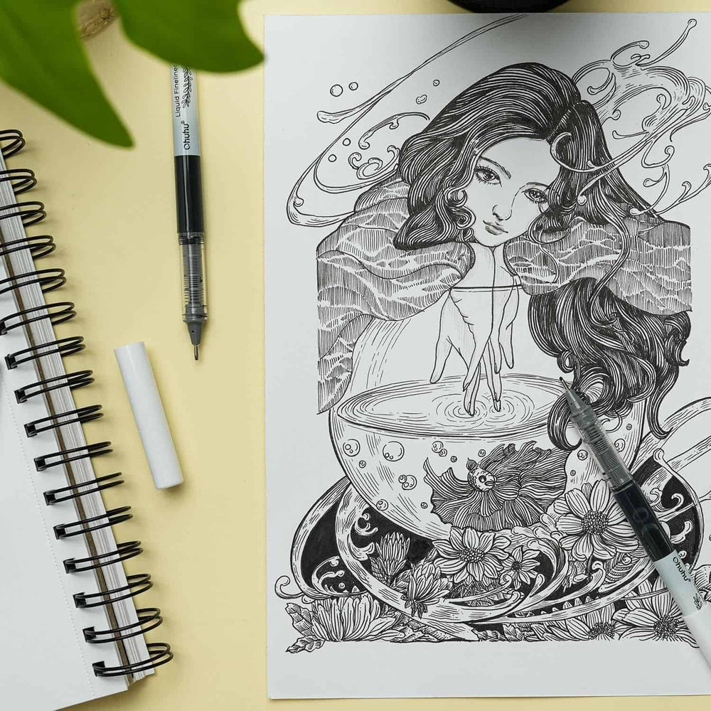 ¡No dejes que el agua o el alcohol te detengan! Los rotuladores líquidos Ohuhu están rellenos de tinta pigmentada negra que es resistente al agua y al alcohol. Combina a la perfección con marcadores a base de alcohol, bolígrafos acuarelables, lápices de colores y acuarelas, abriendo infinitas posibilidades creativas.