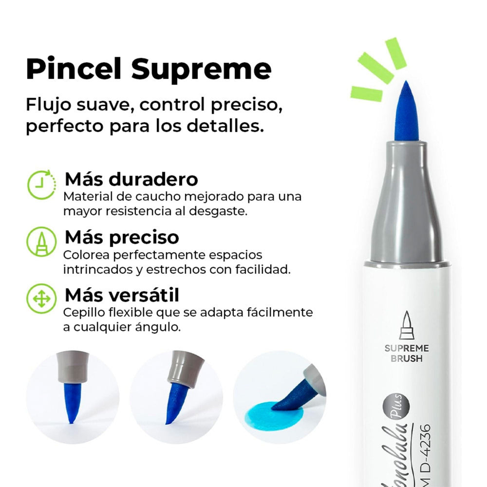 Descubre la Serie Honolulu Plus de Ohuhu que te ofrece marcadores con doble punta para que tengas por un lado, una punta pincel flexible🖌️que se adapta a cualquier ángulo para detalles finos y trazos expresivos, y por otro, una punta biselada, ✍️ perfecta para cubrir áreas grandes con uniformidad y textura. Además, incluye un blender incoloro para mezclas suaves y un práctico estuche 🎒 que mantiene todo organizado y siempre a mano.