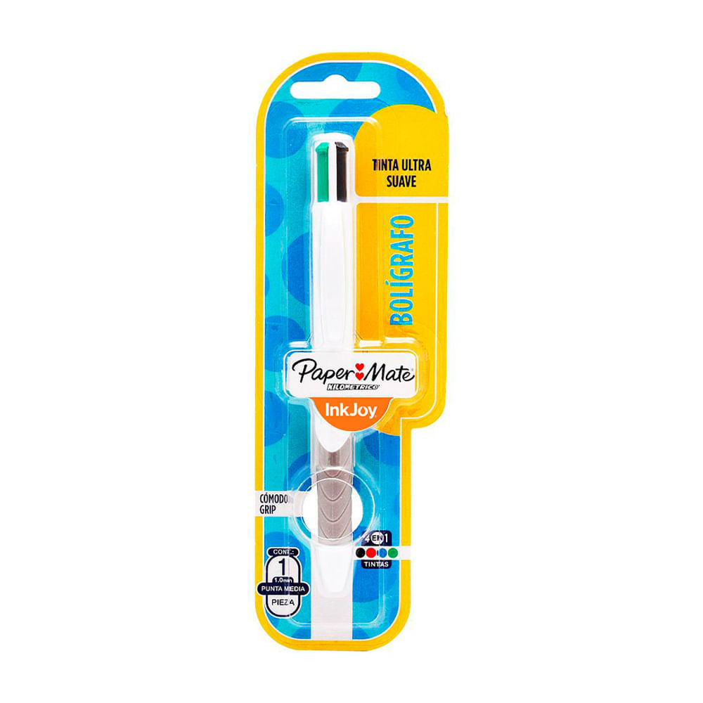 El Bolígrafo Paper Mate InkJoy Quatro es cómodo y versátil. Con cuatro colores Básicos en un solo cuerpo, no tendrás que buscar otro bolígrafo para escribir en diferentes colores. Diseñado para una escritura suave y sin esfuerzo, gracias a su punta de bola y tinta ligera.