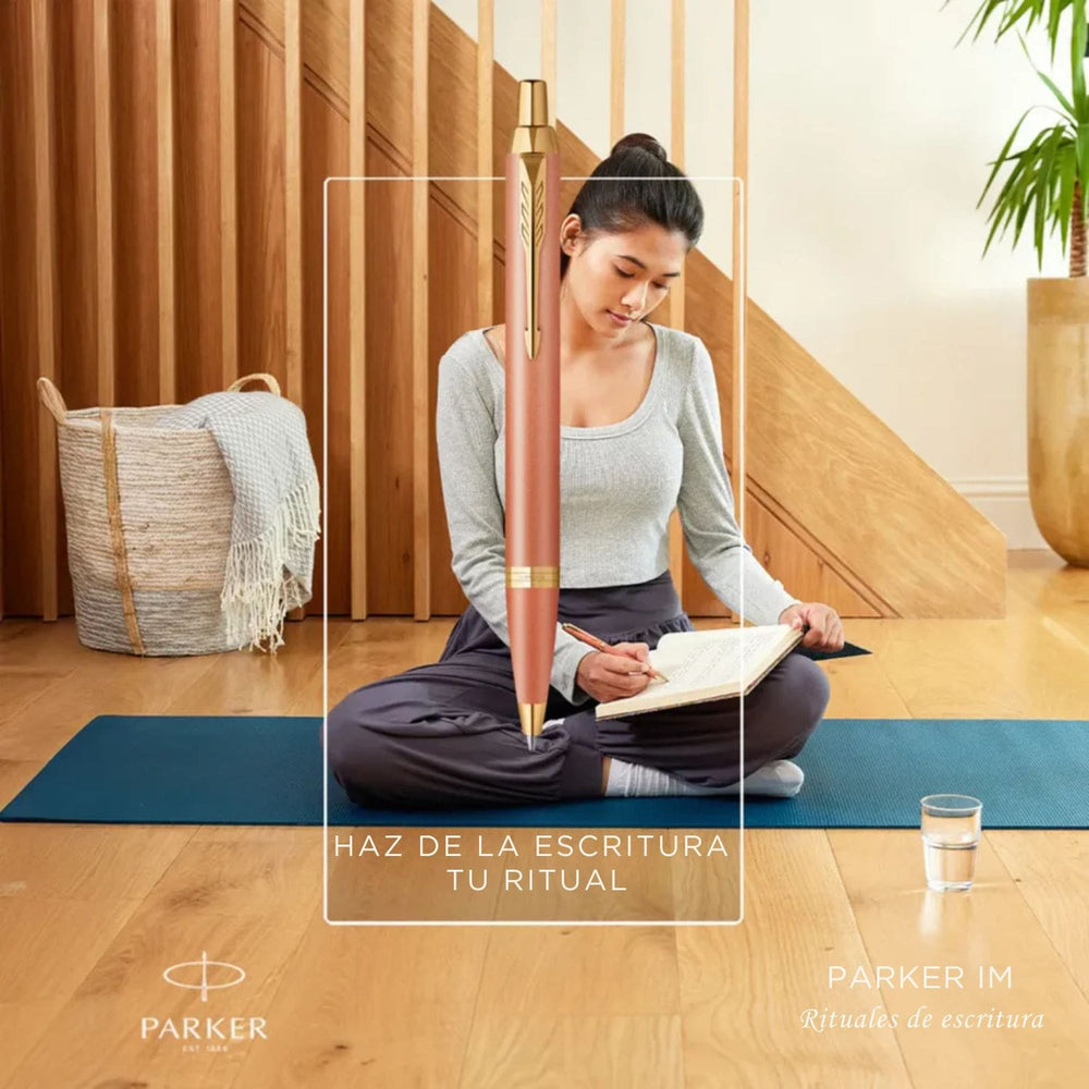 La colección Parker IM Writing Rituals, de hermosa factura, se ha diseñado pensando en las rutinas de bienestar del escritor. Su peso, estética, tacto y suave tinta añaden un toque de lujo y concentración a la escritura. Ya sea para escribir un diario, planificar, escribir de forma creativa o tomar notas, Parker IM es perfecto para esos momentos de bienestar. Cada bolígrafo de la colección presenta un efecto degradado de color diferente y un acabado satinado metálico, en perfecta armonía con un adorno de PVD dorado o cromado. Inspirados en la teoría del color, cada color se seleccionó por su efecto calmante, inspirador o estimulante. Parker IM Writing Rituals es un regalo ideal o un tesoro personal.