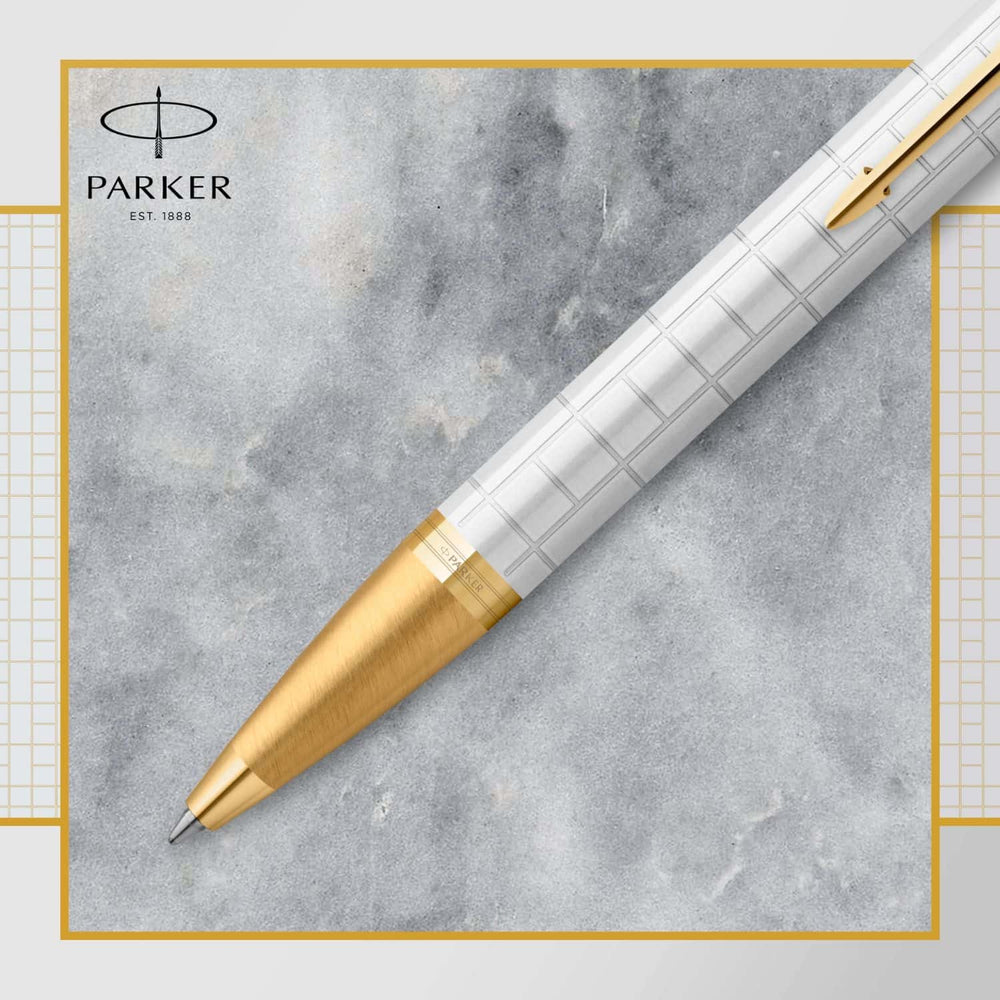 Parker Im Premium - Boligrafo Premium Pearl Lacquer, Gold Trim, Punta Media, Tinta Azul
