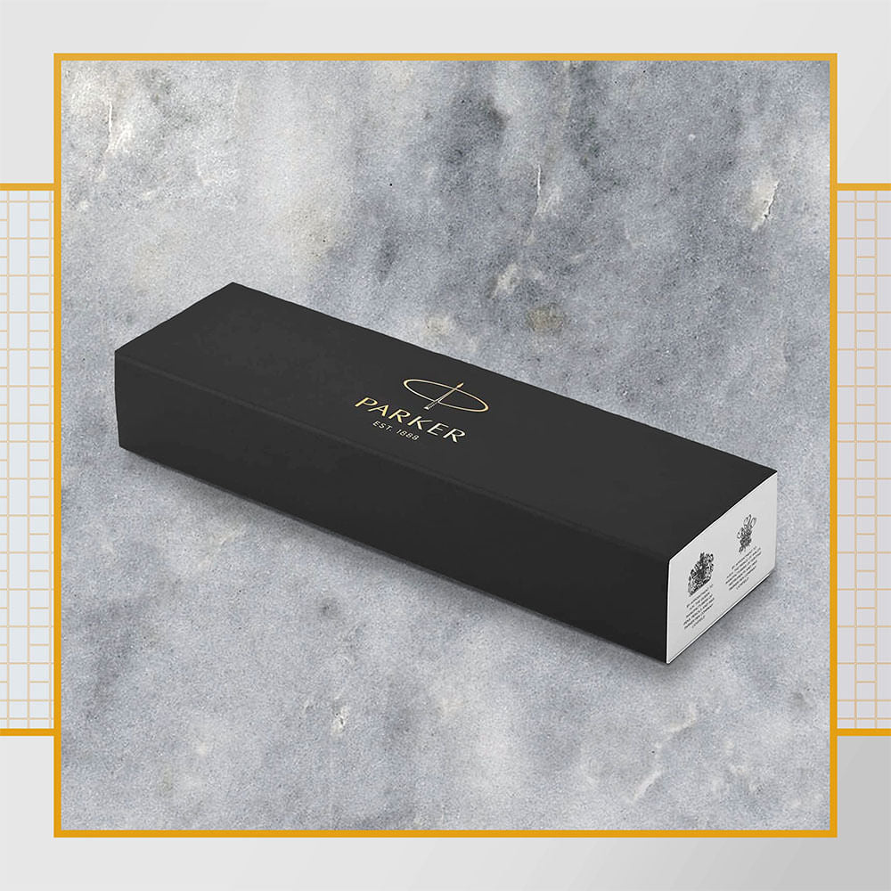 Diseño elegante, que se combina con una silueta moderna y cónica. Acabado perlado complementado con adornos dorados y el característico clip de flecha PARKER. Punta fina duradera de acero inoxidable para brindar una mejor experiencia. Agarre cómodo y ergonómico, combinado con la artesanía superior de la marca. Un regalo asequible pero sofisticado, que se presenta en una caja de regalo con un cartucho de tinta QUINK largo azul.