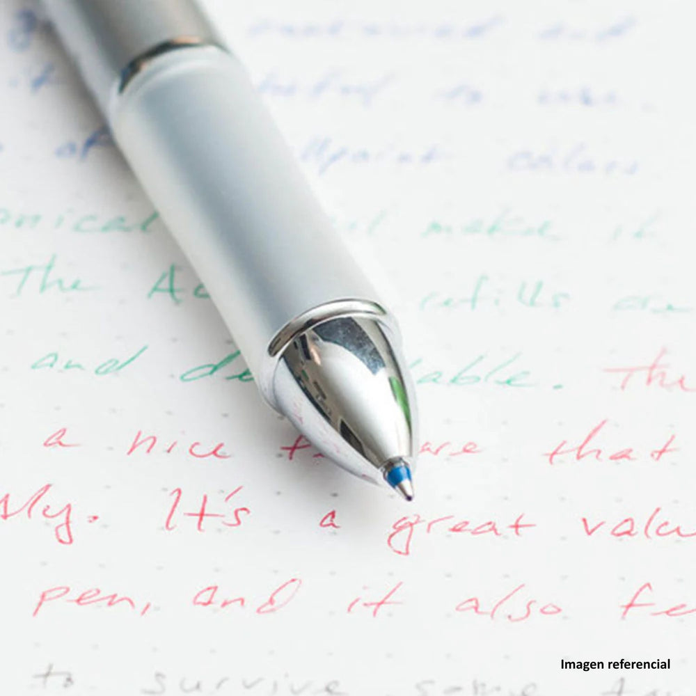 Posee 4 opciones de color de tinta en el mismo cuerpo: Rojo, Negro, Azul y Verde. Además, su diseño ergonómico y suave al tacto te permitirán escribir con comodidad durante largos períodos de tiempo.