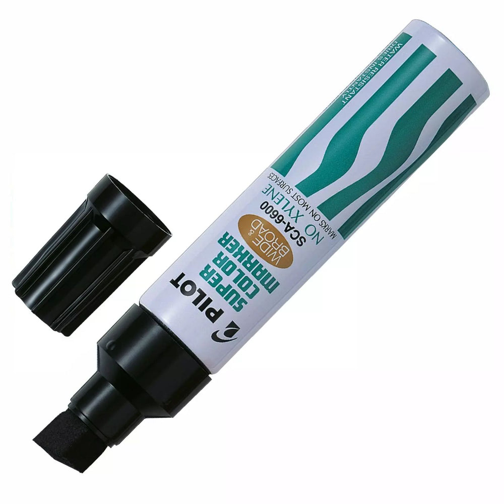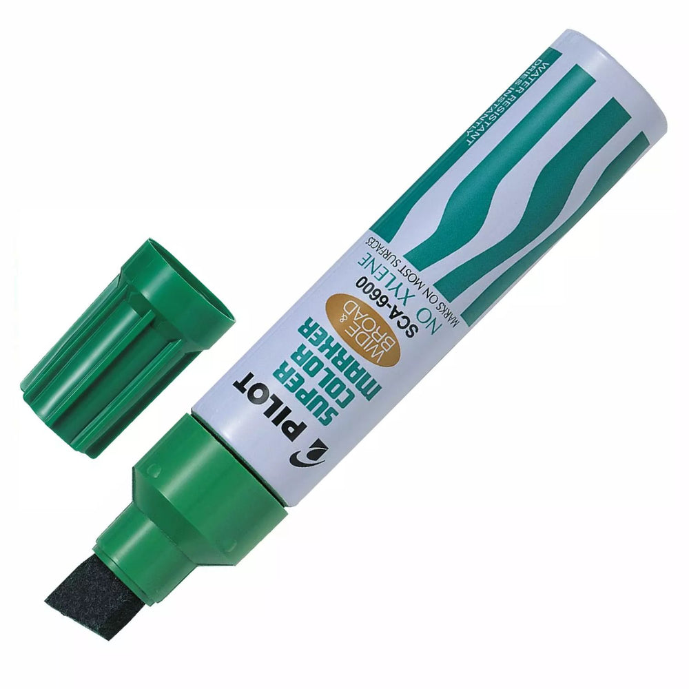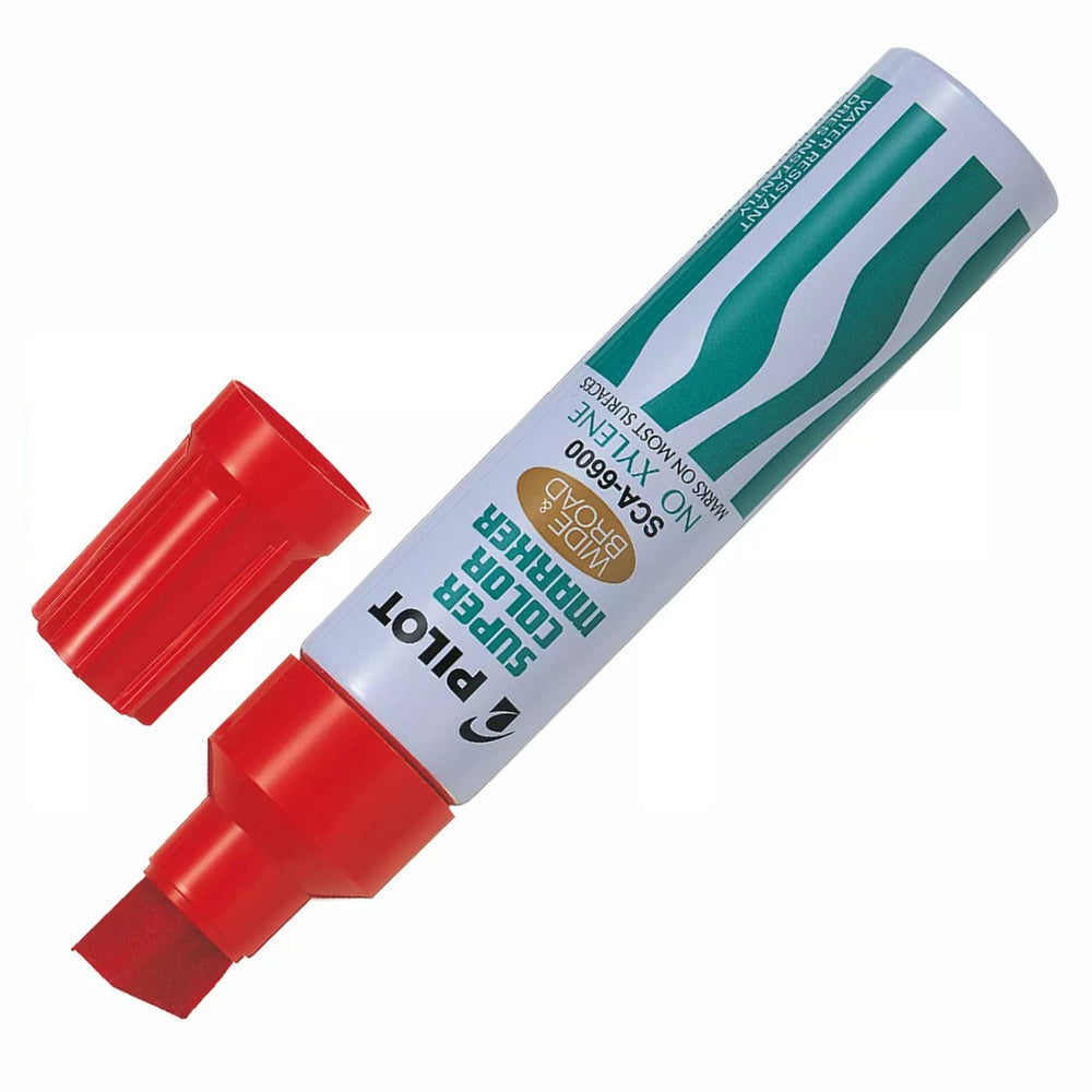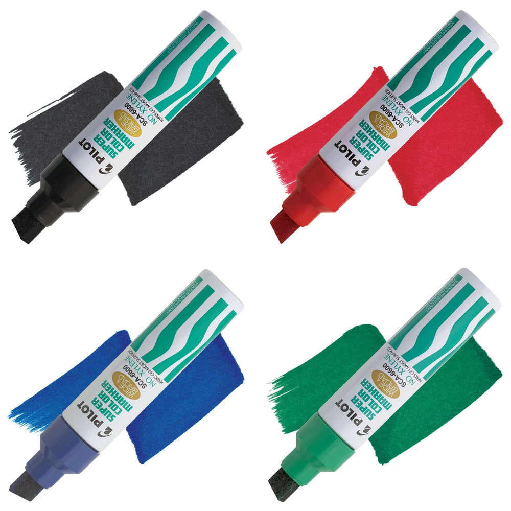 Los Plumones Permanentes Punta Jumbo de la marca Pilot poseen punta biselada de gran tamaño y los encuentras disponibles en cuatro colores: Negro, Rojo, Verde y Azul. Estos marcadores industriales te permitirán escribir prácticamente sobre cualquier superficie, tal como madera, metal, plástico, papel, vidrio y más. Su tinta es resistente al agua, sin xileno y se seca al instante. Al ser recargables, te aportarán mayor durabilidad y, al mismo tiempo, te permitirán cuidar el medio ambiente.