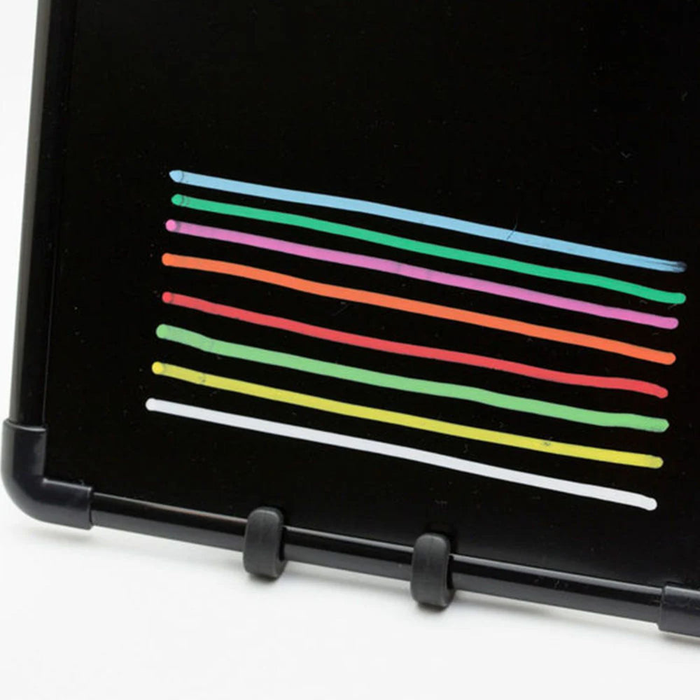 Estos marcadores de tiza son fáciles de usar y ofrecen una excelente calidad en su trazo. La tinta de alta pigmentación proporciona colores intensos y duraderos, que se adhieren de manera suave y uniforme a la superficie. Además, su punta redonda y de gorosor medio, te permite trazar líneas definidas. El set incluye los siguientes colores: Celeste, Rosado, Amarillo, Verde Claro, Verde Oscuro, Naranja, Blanco y Rojo.