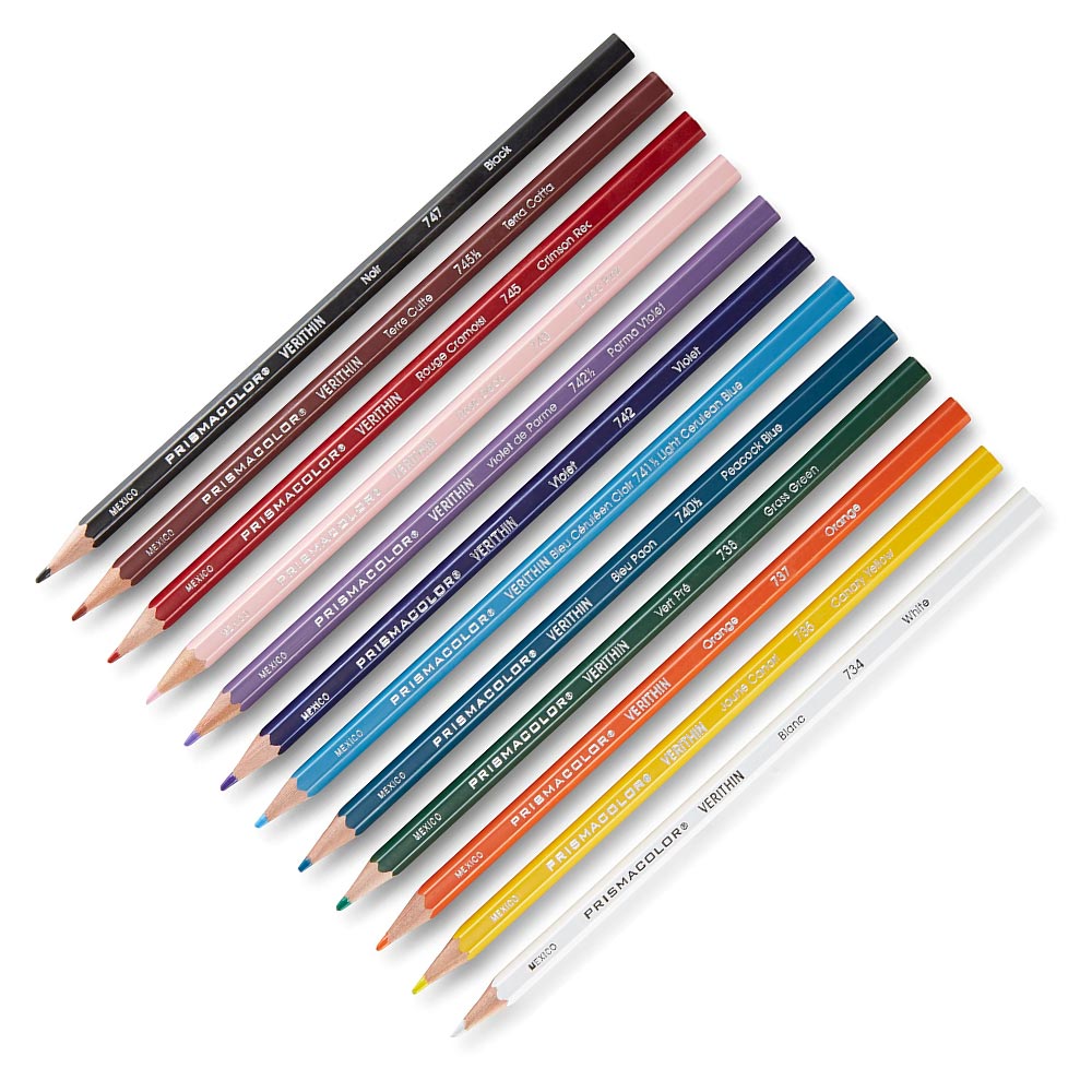 Los lápices Prismacolor Verithin son lápices de mina delgada, perfectos para detalles, bordes y letras. Sus pigmentos son ricamente saturados y resistentes a la luz. Sus minas endurecidas son ideales para trazos finos.