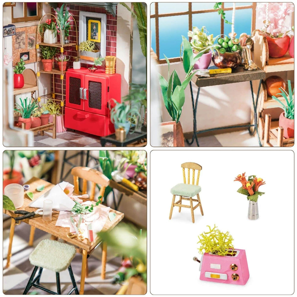 Este conjunto es uno de los más vendidos por Robotime y uno de los más apreciados por los aficionados al bricolaje. Emily's Flower Shop está inspirada en las tiendas que se ven en películas y programas de televisión. Emily es jardinera y propietaria de esta floristería. Puedes conseguir cualquier flor aquí, ¡pero ella solo vende sus artículos a los amantes de las flores de corazón!