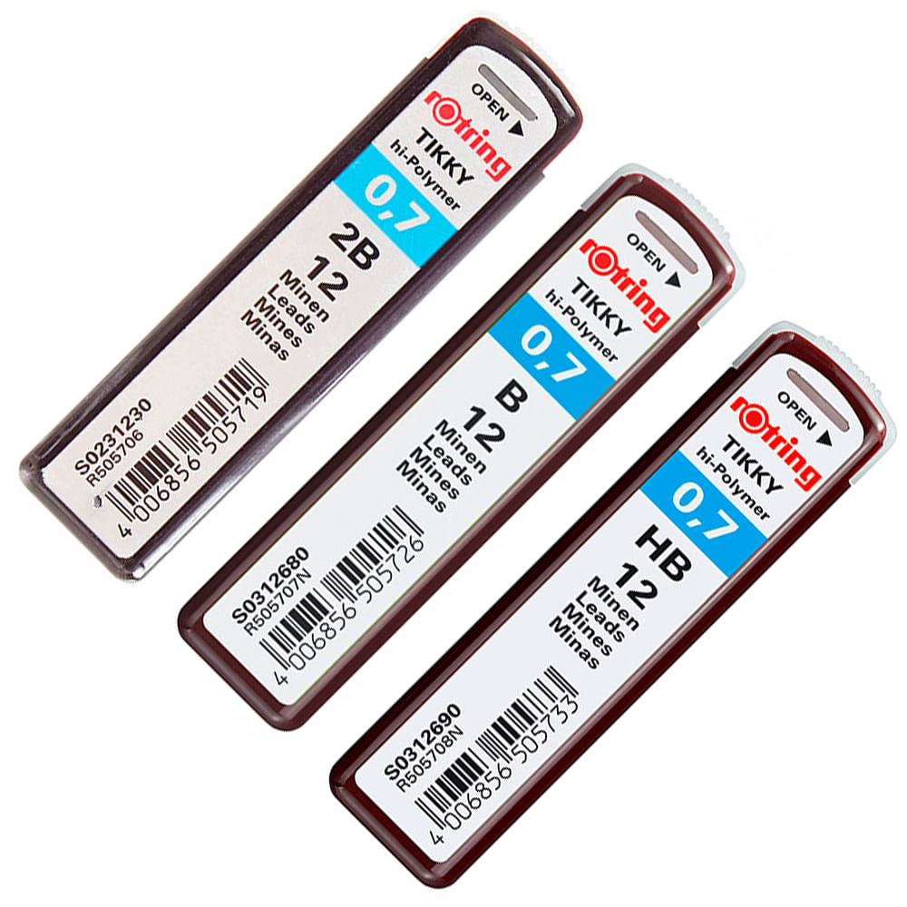 Minas flexibles de polímeros 0,7 mm para portaminas. Sólidas y fáciles de borrar, de la calidad que sólo Rotring puede ofrecer.