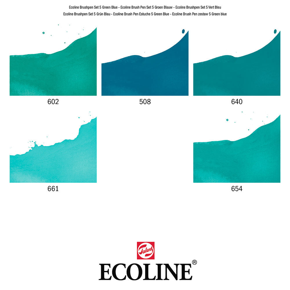 Royal Talens Ecoline - Set 5 Marcadores Brush Pen Verde Azul