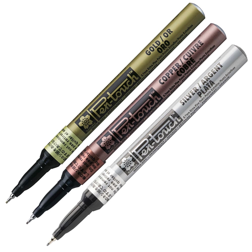 Con los Marcadores Extra Finos Pen-Touch de la marca Sakura dibuja o escribe en colores con un efecto metálico. Ideales para decorar tarjetas de felicitación, objetos artesanales y más. Poseen buena adherencia en la mayoría de las superficies como metal, vidrio, madera, plástico y papel. Ilumina la oscuridad con estos colores claros de excelente calidad japonesa. No contienen xileno y son bajos en olor.