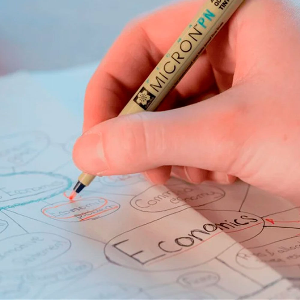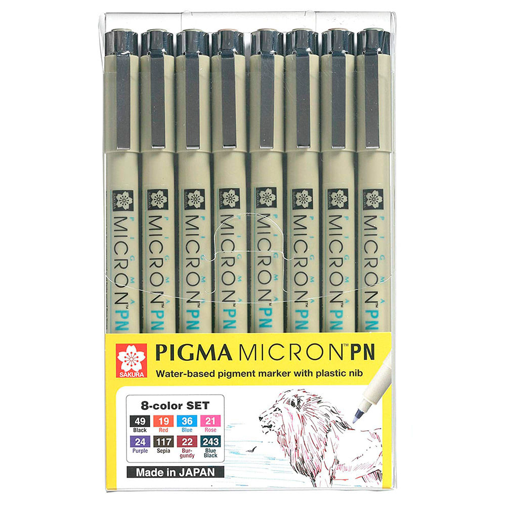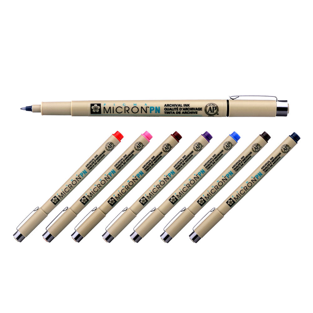 Pigma Micron PN es un tiralíneas de pigmento basado en agua con punta plástica. La tinta a prueba de agua no se corre, adecuado para utilizar con acuarelas.