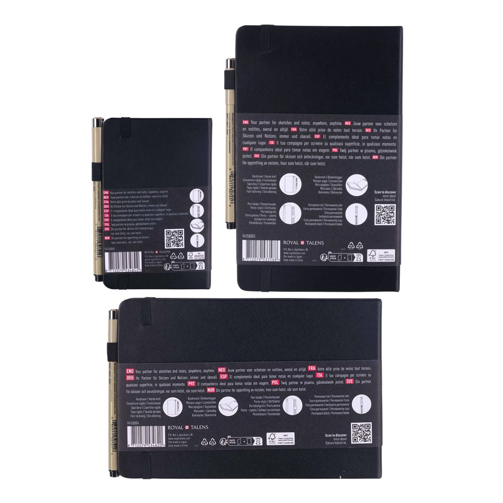 Los Sketch Note Books de Sakura combinan resistencia y funcionalidad en un solo cuaderno 📓, de tapa dura con papel libre de ácidos, perfecto para conservar tus trabajos en tinta, lápiz, pastel al óleo o carboncillo 🎨. Cuenta con un práctico soporte para rotuladores compatible con Pigma Micron y Sakura Gelly Roll, un bolsillo desplegable en la contraportada para guardar bocetos y notas 🗒️, y una banda elástica de cierre que lo mantiene siempre compacto y protegido durante tus desplazamientos ✈️.