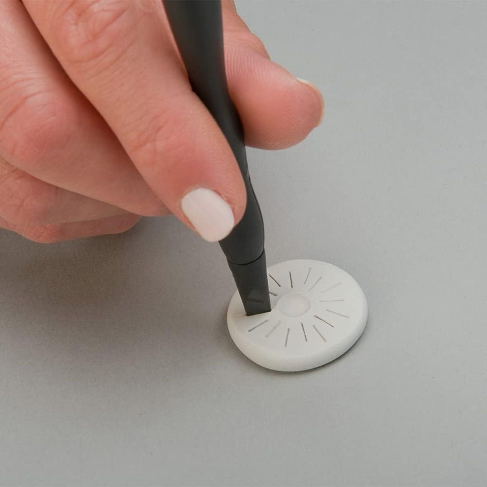 - Delineador con Punta de Cono, para moldear y suavizar la arcilla, unir bordes, crear texturas y patrones.