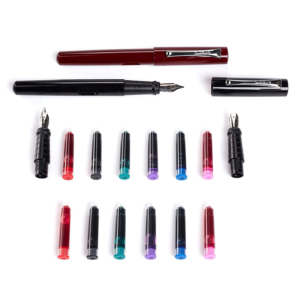 | Contenido | : | 2 Plumas Fuente. 3 Plumillas. 1 Libro Speedball Textbook. 12 cartuchos de tinta (2 de cada color). |