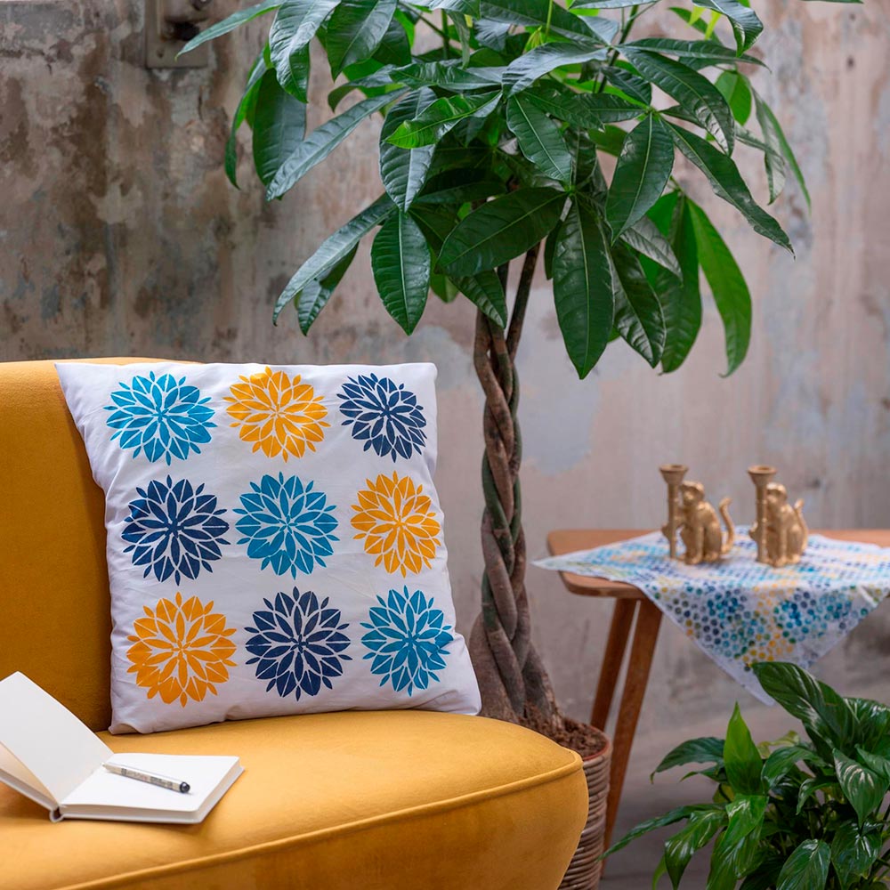 Talens Art Creation Textile es una pintura para telas ideal para diseño de ropa, decoración de cojines y otros tejidos. Usar en telas claras (+ 50% Algodón). Lava la tela sin utilizar suavizante antes de pintar. Decora la tela con una esponja o un pincel suave y después de secar durante ± 30 minutos fija planchando (temperatura para algodón) con una hoja de papel antigrasa entre el producto y la tabla de planchar. Después de la fijación, la tela puede lavarse hasta 40 °C y también es adecuada para la secadora.