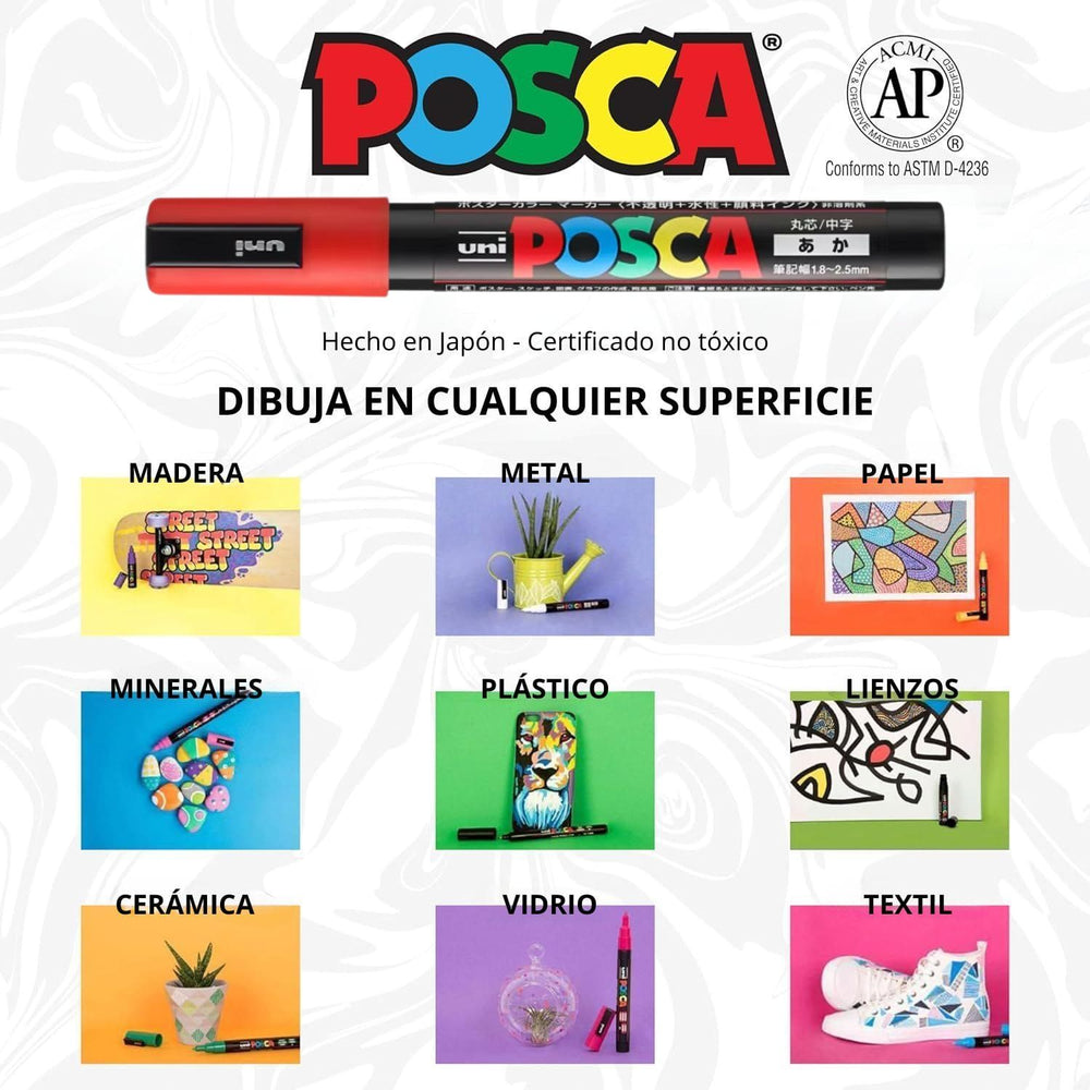 Con los lápices Posca puedes desplegar tu arte sobre una gran variedad de superficies; utilízalos sobre papel, plástico, metal, piedras, madera, etc. ¡Dale vida a tus artículos con los colores que más te gustan!